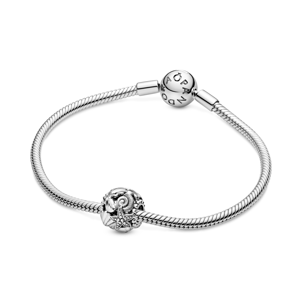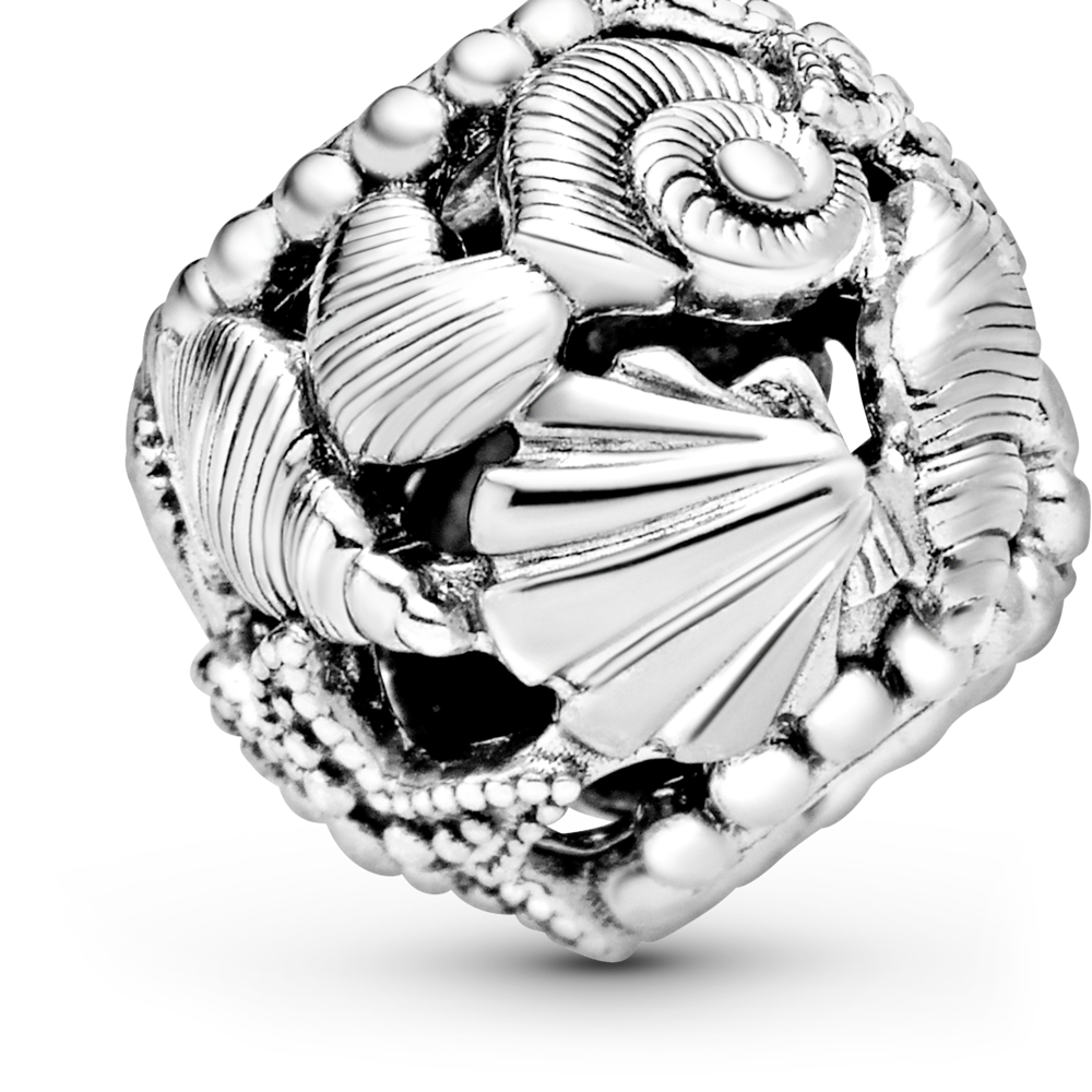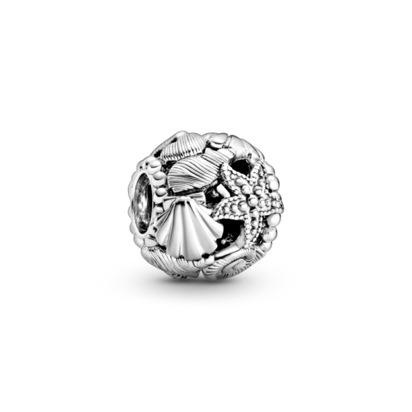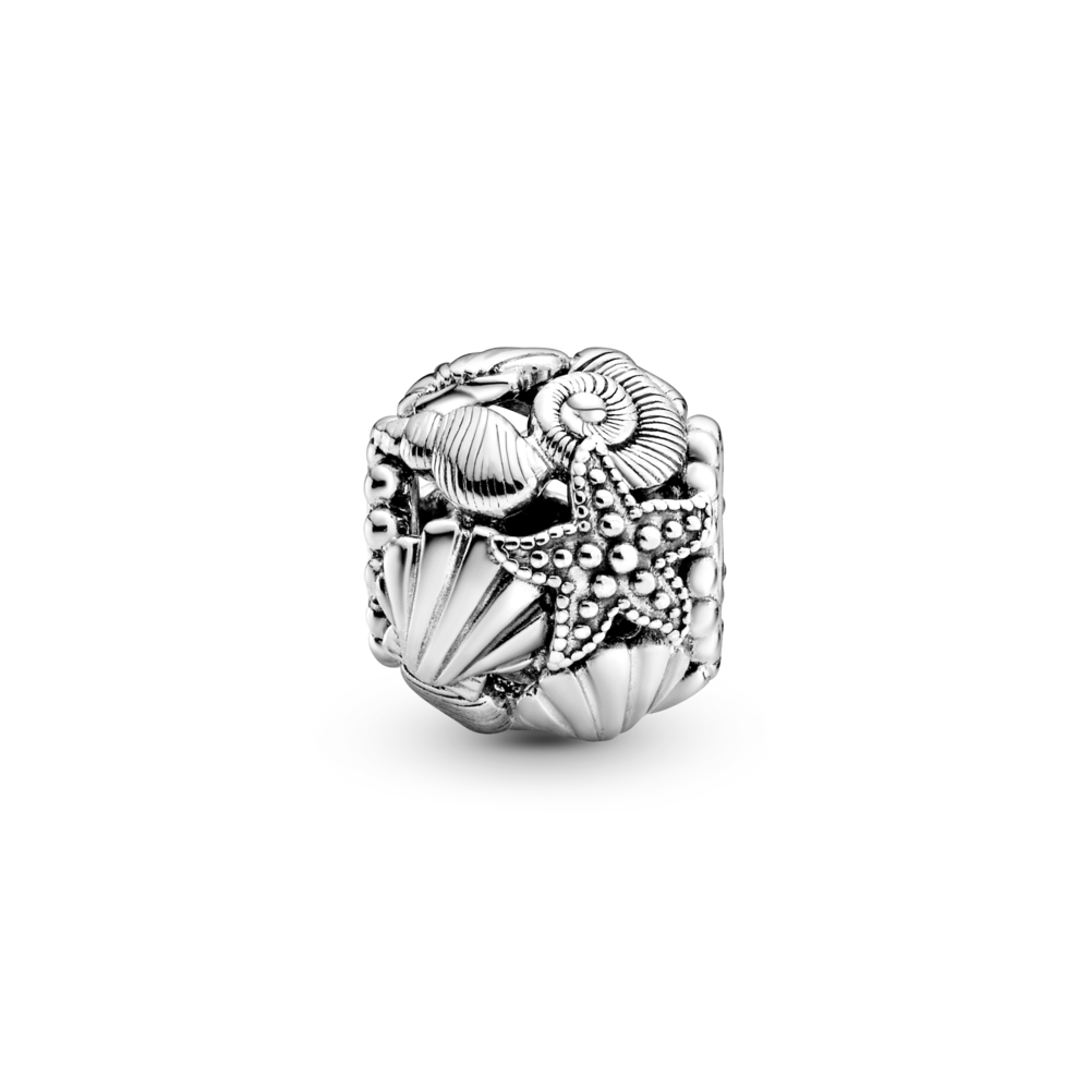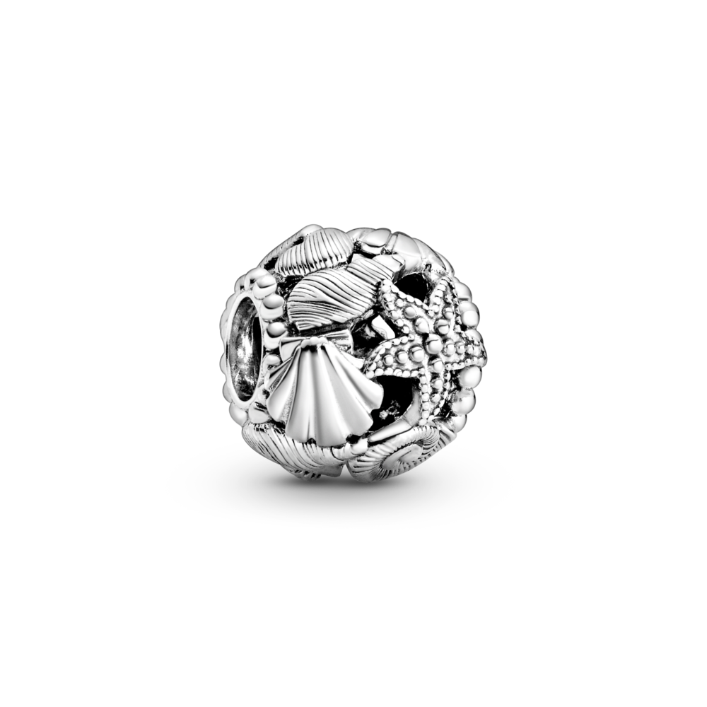 Ażurowy charms z rozgwiazdą, muszlami i sercami został zainspirowany skarbami oceanicznych głębin – ozdób nim swoją bransoletkę i zanurkuj w lato. Srebrny ażurowy wzór z różnymi muszelkami, rozgwiazdami oraz sercami o rzeźbionej i kulkowej powierzchni zachwyca misternym, efektownym wykończeniem. Noś go, aby wyrazić swoją miłość do wszystkiego, co związane z oceanem, albo jako ozdobny element do letnich stylizacji.