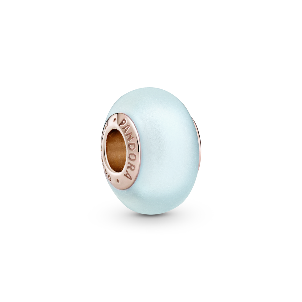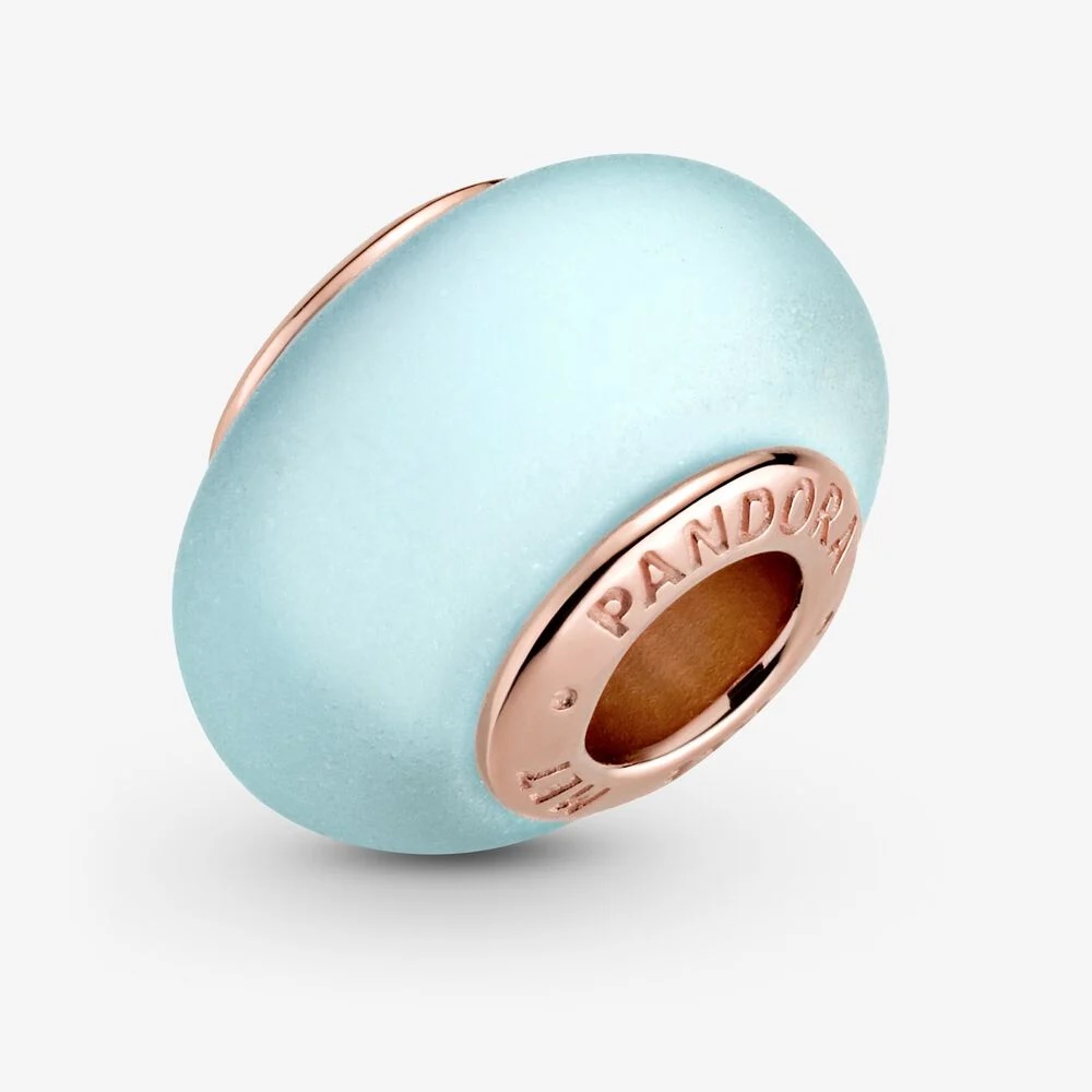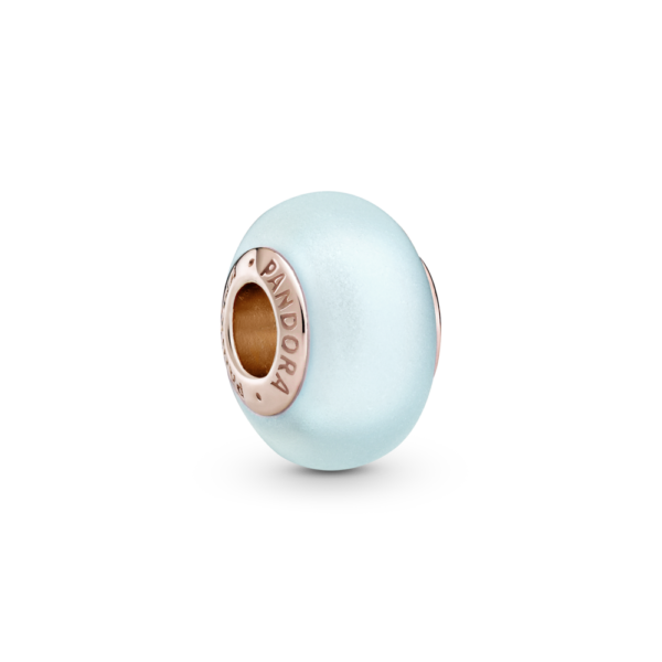 Charms błękitny z matowego szkła Murano PANDORA Rose
