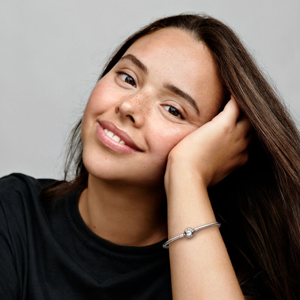 Minimalistyczna elegancja bransoletki Pandora Moments jest po prostu piękna. Wykonana z polerowanego srebra próby 925, wykończona jest zapięciem w kształcie kuli z wytłoczonym napisem. Możesz ją nosić samą albo wykreować bransoletkę marzeń dodając do niej swoją osobistą kolekcję charmsów Moments.