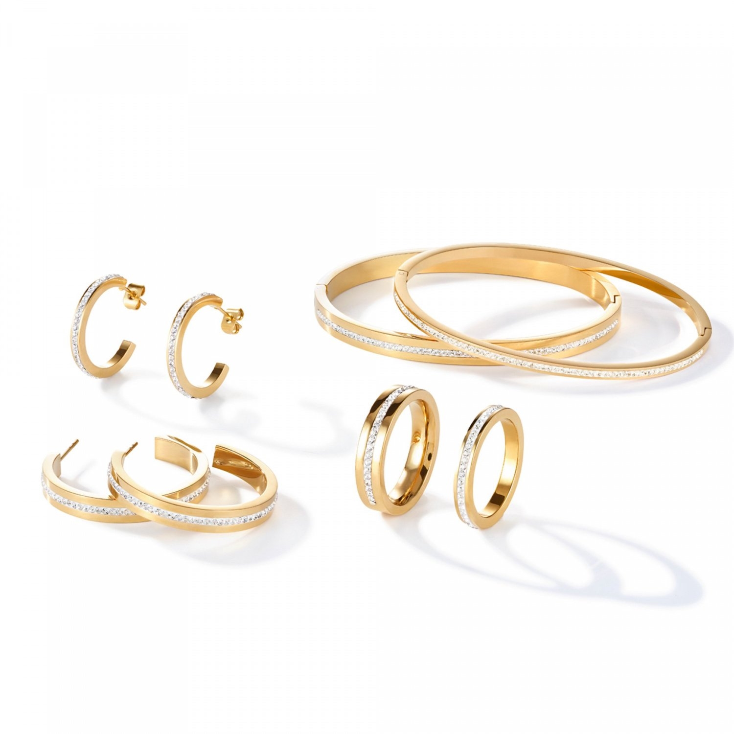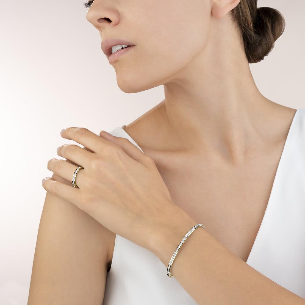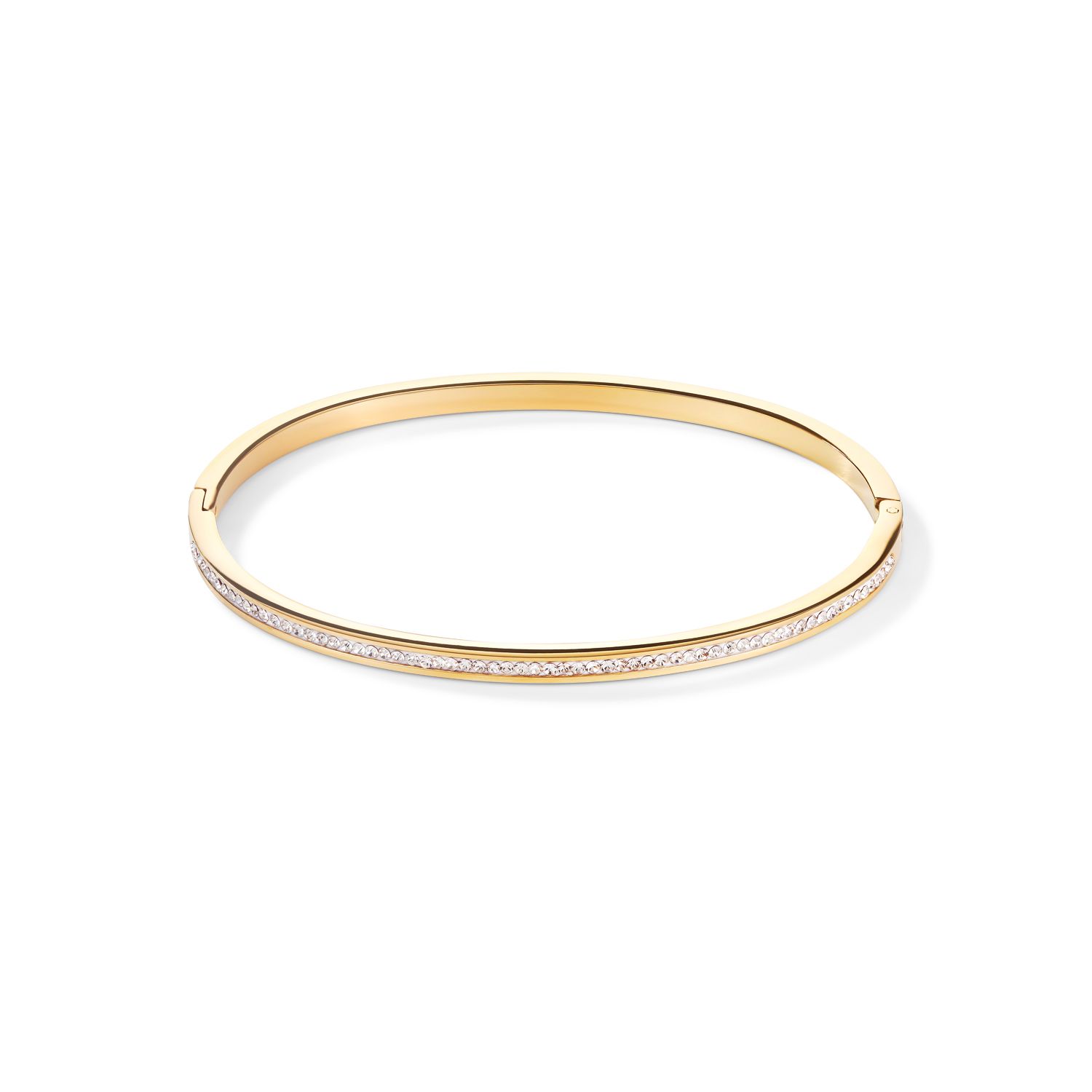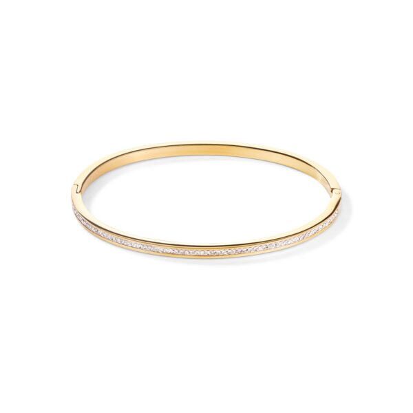 Drobna, delikatna, elegancka: sztywna bransoletka COEUR DE LION wypełniona białymi kryształami w oprawie pavé, w całości wykonana ze stali szlachetnej pokrywana złotem.