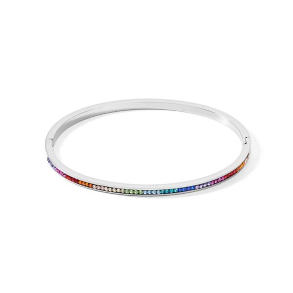 Elegancka bransoletka bangle z błyszczącymi kryształkami w oprawie pavé i zintegrowanym zapięciem na zatrzask, wykonana ze stali szlachetnej.