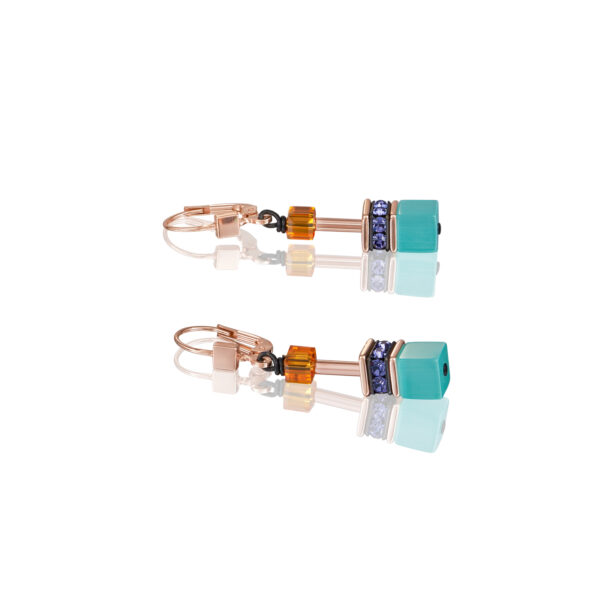 Do każdego stroju na każdą okazję kolczyki z kolekcji GeoCUBE® z syntetycznym tygrysim okiem, w połączeniu z kryształami górskimi oraz z kryształami Swarovski® Crystals i stalą szlachetną pokrywaną różowym złotem. Zapięcie wykonane jest ze srebra pr. 925 pokrywanego różowym złotem.
