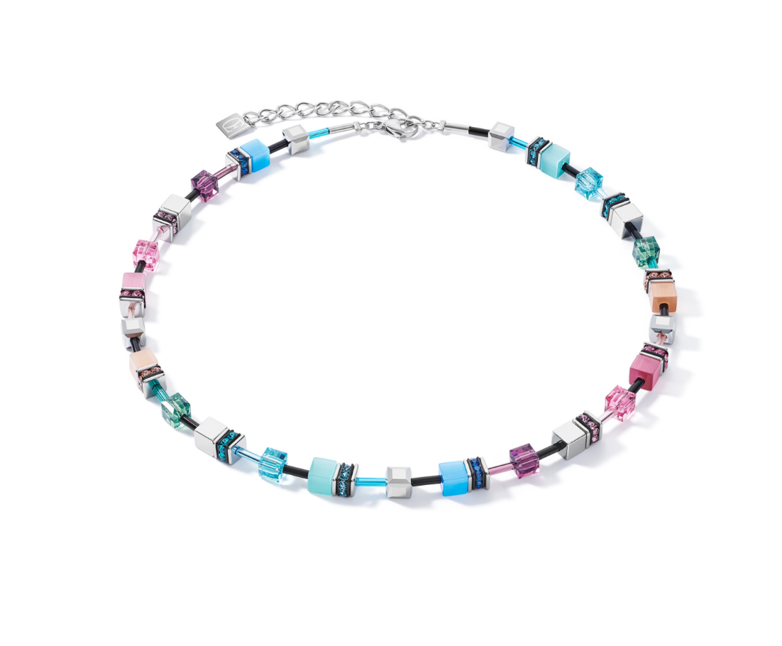 Świeża, wielokolorowa wersja słynnego, klasycznego designu GeoCUBE®. Kolczyki ręcznie wykonane z błyszczącego hematytu z wykończeniem z tlenku tytanu, błyszczących kryształów Swarovski® i syntetycznego tygrysiego oka. Te kolczyki dodadzą lekkości i blasku każdej stylizacji. Dostępne z dopasowanym naszyjnikiem, pierścionkiem i bransoletką – jak zwykle w przypadku COEUR DE LION.