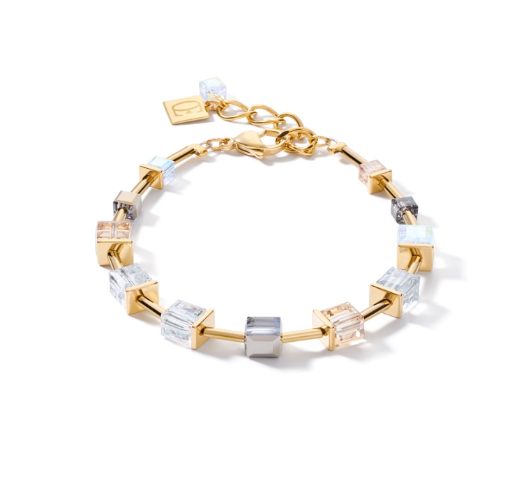 Stonowana biżuteria nigdy nie wychodzi z mody: elegancka bransoletka z kolekcji GeoCUBE® ze złotą stalą szlachetną i błyszczącymi kryształami Swarovski®.