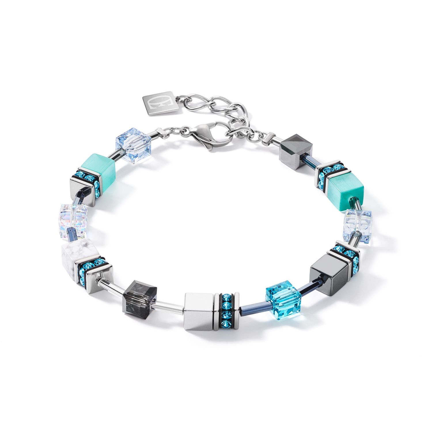 Stonowana biżuteria nigdy nie wychodzi z mody: elegancka, minimaistyczna bransoletka z kolekcji GeoCUBE® z kamieniami szlachetnymi, takimi jak howlit i hematyt oraz błyszczącymi kryształami Swarovski® i stalą szlachetną 316L.