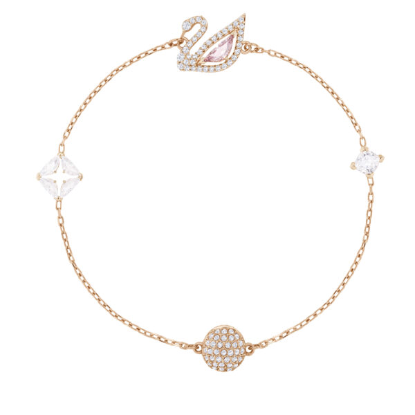 Pełna uroku, efektowna bransoletka w romantycznym stylu. Powlekana różowym złotem i ozdobiona motywem łabędzia z pełnowymiarowego kryształu w modnym różowym odcieniu otoczonego szklaną oprawą pavé stanowi kwintesencję stylu Swarovskiego. Bransoletkę wyposażono w innowacyjne magnetyczne zapięcie umożliwiające łączenie z modelami z kolekcji Swarovski Remix i tworzenie oryginalnych stylizacji w formie podwójnie zawijanej bransoletki, naszyjnika lub chokera. Uniwersalny styl, który zajmie ważne miejsce w Twojej kolekcji biżuterii. Dostępne są inne pasujące elementy biżuterii.