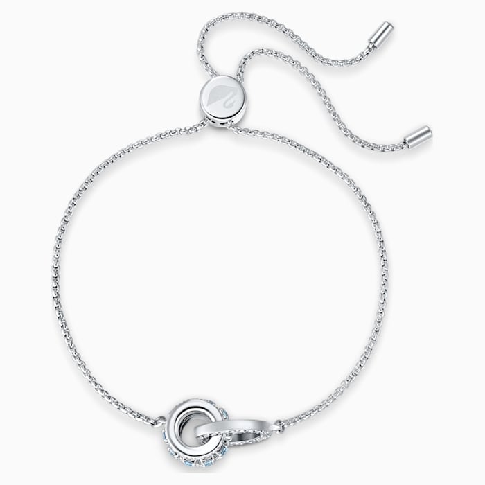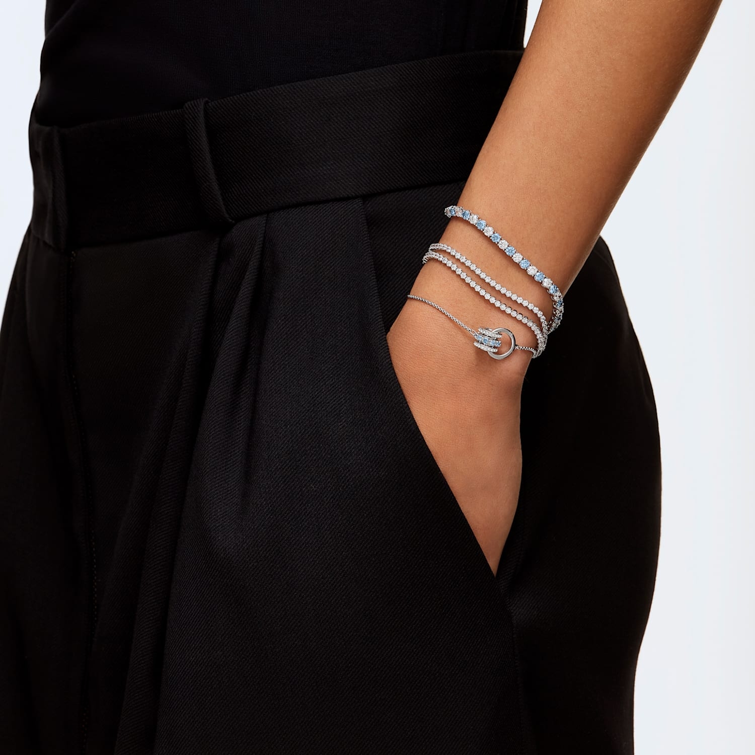 Ta urocza bransoletka, ze specjalnej kolekcji z okazji naszego 125-lecia, inspirowana jest klasycznymi bestsellerami Swarovskiego. Ozdobiona jest przeplatającymi się elementami wysadzanymi licznymi jasnoniebieskimi kamieniami Swarovskiego w oprawach pavé i szatonowej. Jasny kolor kamieni idealnie komponuje się z powlekanym rodem łańcuszkiem, tworząc doskonałą biżuterię zarówno do poważnych strojów biznesowych, jak i rekreacyjnych.