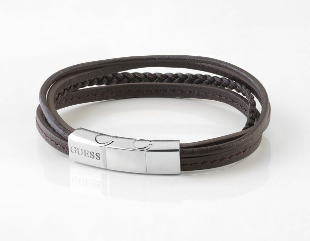 Bransoletka Guess wykonana ze skórzanych rzemyków to przyciągający uwagę dodatek, który świetnie będzie się komponował z zegarkiem i innymi elementami biżuterii .