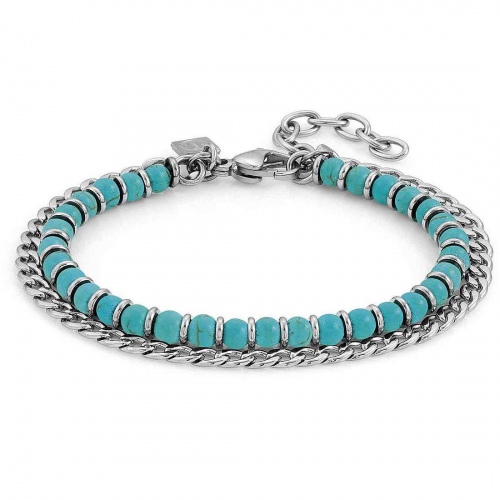 Bransoletka Nomination Italy z kolekcji Instinct, wykonana ze stali szlachetnej. Zdobiona turkusowymi kamieniami naturalnymi, howlit . Idealna bransoletka dla mężczyzn którzy pragną wyróżniać się oryginalnością.