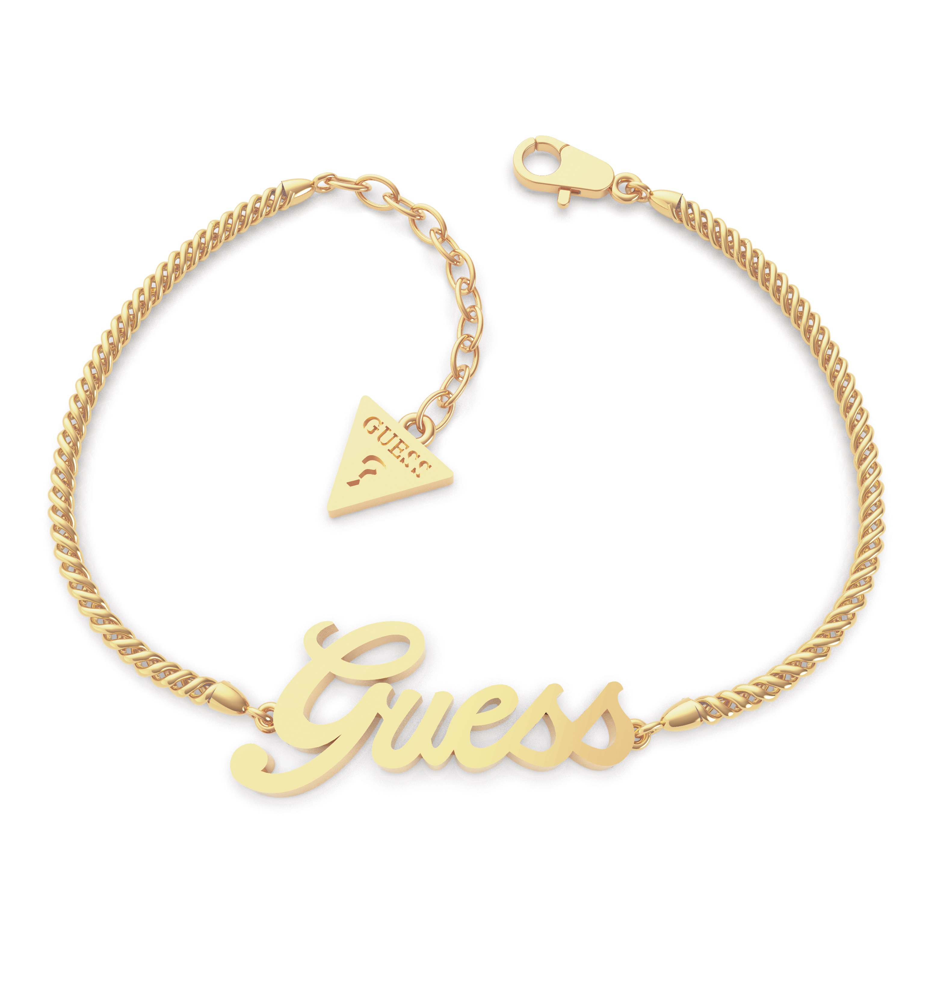Ponadczasowa bransoletka z kolekcji “Logo Power” wykonana ze stali nierdzewnej platerowanej warstwą żółtego złota na łańcuszku. Pośrodku znajduje się napis „ Guess ”, który podkreśla luksusowy wygląd biżuterii. Zapięcie na karabińczyk. Możliwość regulacji.