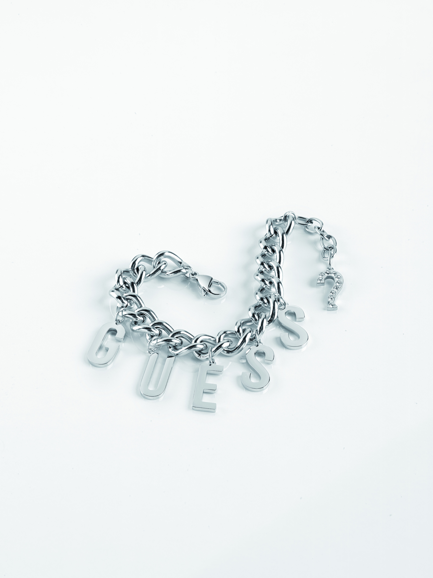 Ponadczasowa bransoletka z kolekcji “Los Angeles” wykonana ze stali nierdzewnej na łańcuchu. Ozdobiona wiszącymi literkami składającymi się w logo “Guess”. Zapięcie na karabińczyk. Możliwość regulacji.