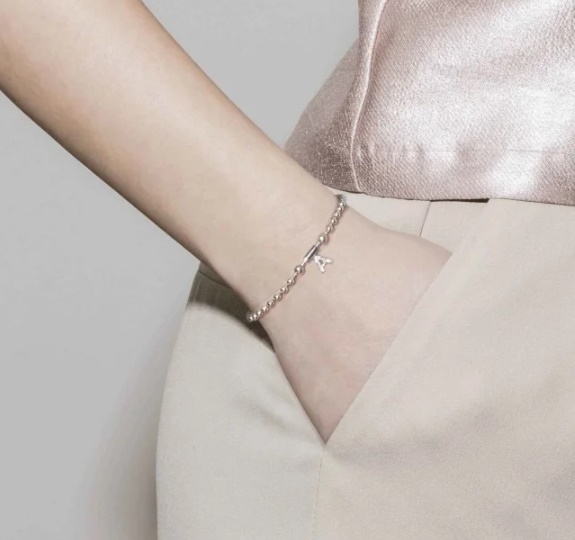 Bransoletka wykonana ze srebra próby 925 rodowana, składająca się z małych, subtelnych kuleczek, z zawieszką w kształcie litery A z cyrkoniami Swarovskiego i pokrytą rodem, by zapobiec jej zmatowieniu. Biżuterię można personalizować za pomocą zawieszek z kolekcji SeiMia. Ułóż litery w imię, szczególny dla Ciebie napis lub dodaj inicjały swojej prawdziwej miłości.