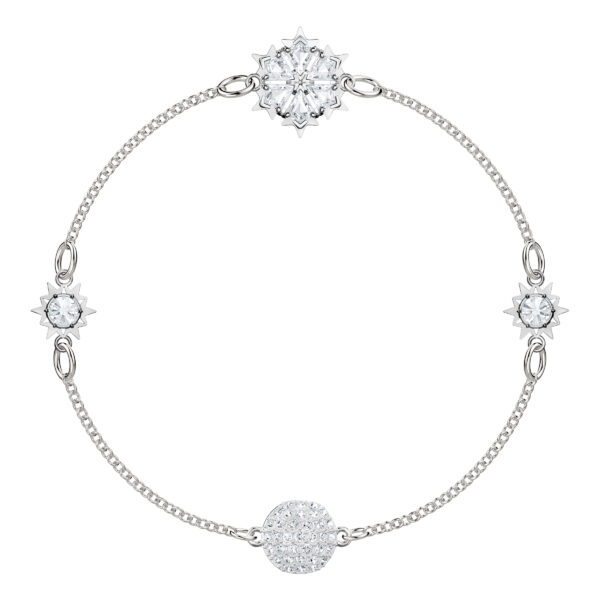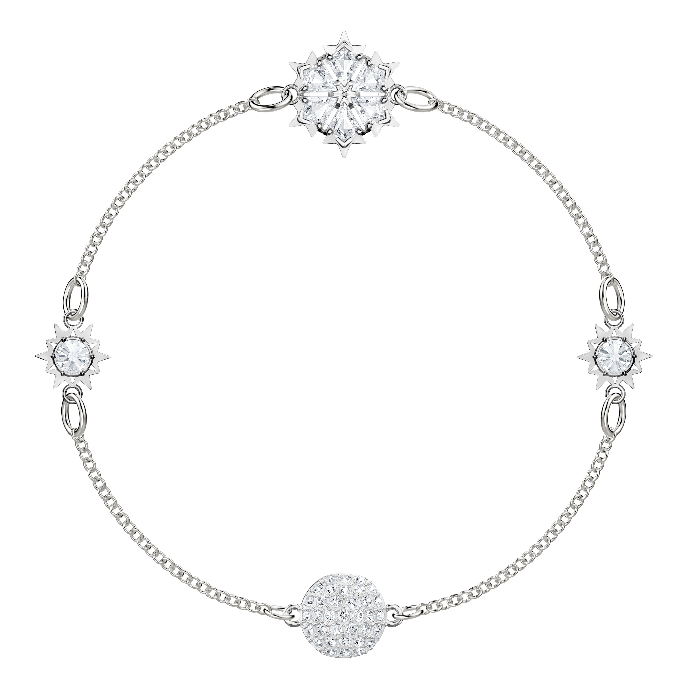 Stwórz własną spersonalizowaną biżuterię dzięki kolekcji Swarovski Remix Collection. To nowatorska koncepcja wykorzystująca niewidoczne zapięcie magnetyczne, za pomocą którego można łączyć ze sobą poszczególne elementy z tej kolekcji, za każdym razem tworząc wyjątkową stylizację. Ten łańcuszek z błyszczącymi płatkami śniegu oraz kryształową oprawą pavé można nosić solo jako bransoletkę lub połączyć z innymi łańcuszkami, aby stworzyć swój własny naszyjnik, choker lub podwójnie zawijaną bransoletkę.