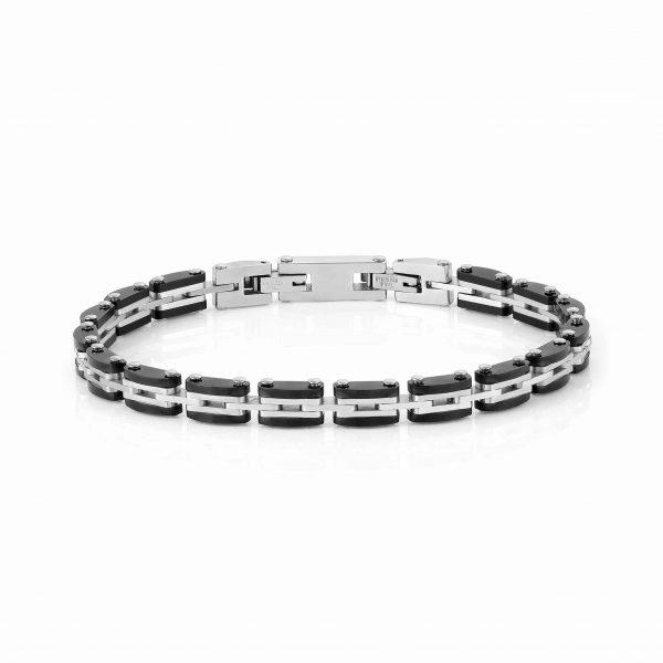 Bransoletka wykonany ze stali szlachetnej, wykończonej powłoką PVD.