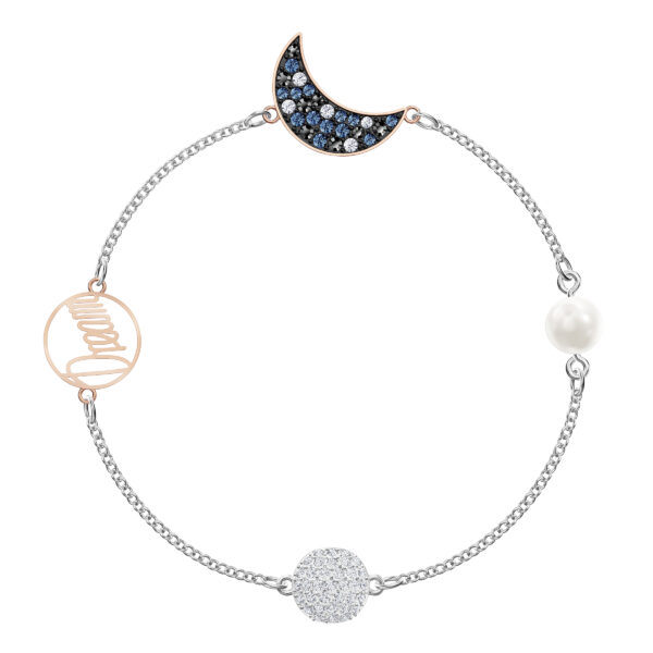 Kolekcja Swarovski Remix umożliwia skomponowanie własnej biżuterii, która sprawdzi się o każdej porze. To nowatorska koncepcja wykorzystująca niewidoczne zapięcie magnetyczne, za pomocą którego można łączyć ze sobą poszczególne elementy z kolekcji Remix, za każdym razem tworząc wyjątkową stylizację. Ten delikatny łańcuszek powlekany rodem czerpie inspirację z rodziny Swarovski Symbolic. Połyskuje księżycem wysadzanym ciemnymi kryształami w oprawie pavé, a także oszałamiającą kryształową perłą. Łańcuszek możesz nosić jako bransoletkę lub łączyć z innymi łańcuszkami, tworząc unikatową ozdobę. Idealny pomysł na prezent.