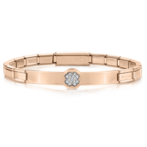 Bransoletka Nomination Italy z kolekcji Trendsetter Smarty Edition. Elastyczna bransoletka wykonana ze stali szlachetnej pokrywana kolorem w odcieniu różowego złota metodą PVD. Element ozdobny- blaszka z symbolem koniczynki, cyrkonia. Połącz bransoletkę dowolnie z innymi produktami marki NOMINATION ITALY i stwórz swój niepowtarzalny zestaw!