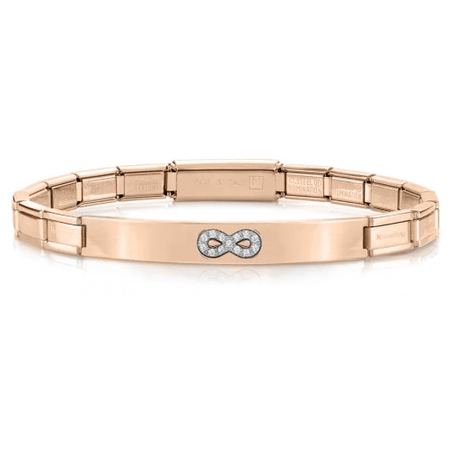 Bransoletka Nomination Italy z kolekcji Trendsetter Smarty Edition. Elastyczna bransoletka wykonana ze stali szlachetnej pokrywana kolorem w odcieniu różowego złota metodą PVD. Element ozdobny- blaszka z nieskończonością pavé. Połącz bransoletkę dowolnie z innymi produktami marki NOMINATION ITALY i stwórz swój niepowtarzalny zestaw!
