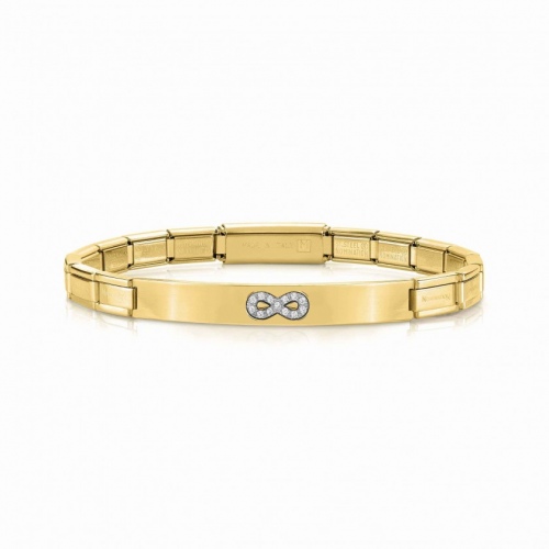 Bransoletka Nomination Italy z kolekcji Trendsetter Smarty Edition. Elastyczna bransoletka wykonana ze stali szlachetnej pokrywana kolorem w odcieniu żółtego złota metodą PVD. Element ozdobny- blaszka z nieskończonością pavé. Połącz bransoletkę dowolnie z innymi produktami marki NOMINATION ITALY i stwórz swój niepowtarzalny zestaw!