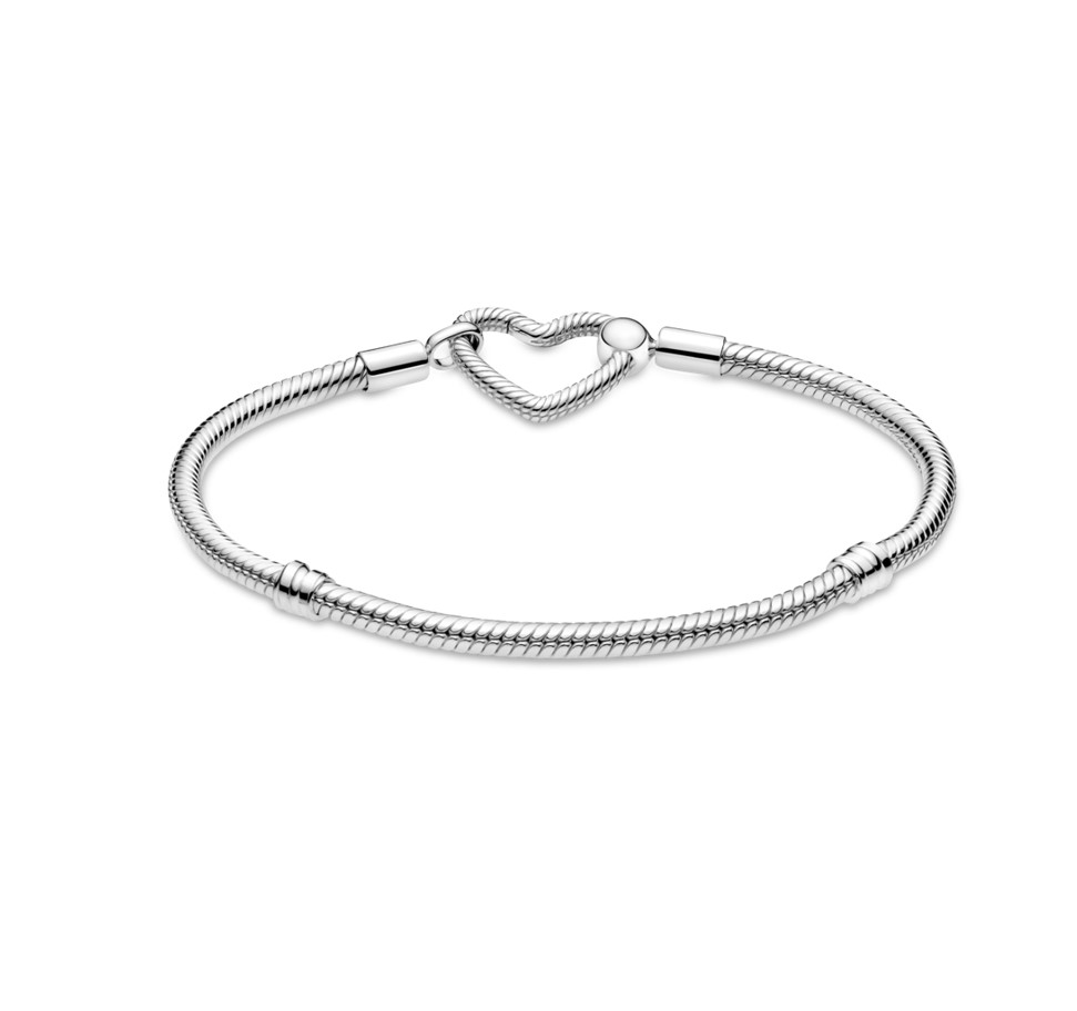 | Dodaj blasku swojemu nadgarstkowi, wybierając bransoletkę typu wężykowego Pandora Moments z zapięciem w kształcie serca. Bransoletka ze srebra próby 925 jest wykonana z kultowego łańcuszka o splocie wężowym Pandora i wyposażona w zapięcie w kształcie serca. Zapięcie działa podobnie jak zapięcie krokodylkowe i można je ozdobić maksymalnie dwoma wisiorkami lub zawieszkami. Zapięcie również obraca się, dzięki czemu bransoletka daje zaskakujące wrażenie dynamizmu. Dodaj do bransoletki swoje ulubione charmsy, aby uzyskać idealnie spersonalizowaną stylizację. |