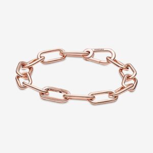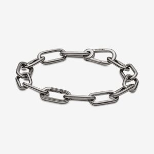 Noś swoją mantrę na nadgarstku. Nasza srebrna bransoletka z ogniwami Pandora ME posiada nieskończone możliwości stylizacji. Bransoletka posiada trzy otwierane łączniki, które wyróżniają się rowkowaną powierzchnią, ozdobne ogniwa oraz zapięcie karabińczykowe. Na początku dopasuj swoją bransoletkę: jeden zestaw splecionych ogniw można zamienić pomiędzy każdym ozdobnym łącznikiem na cztery małe splecione ogniwa, podwójne ozdobne ogniwo lub jedno ozdobne ogniwo – zachowaj oryginalną długość lub dopasuj ją do siebie. Kiedy wybierzesz już swoją bransoletkę, dodaj dwa wymowne medaliony lub maksymalnie osiem małych zawieszek na każdym otwieranym łączniku lub jeden medalion na ozdobnym ogniwie, aby pokazać światu, kim jesteś.