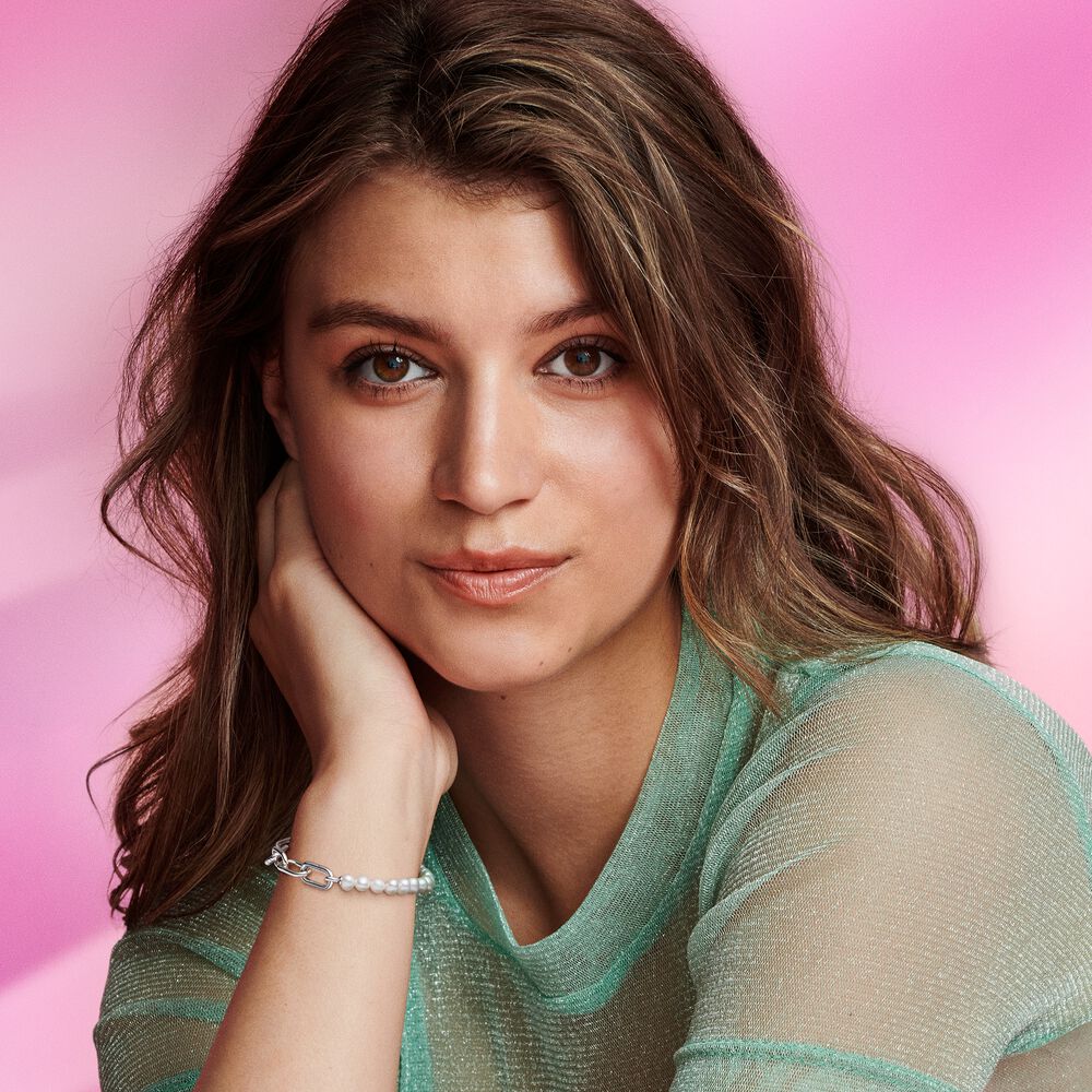 Perły w nowej odsłonie: w srebrnej bransoletce ze słodkowodnych pereł hodowlanych Pandora ME wykorzystano ponadczasowe perły i stworzono projekt z nieskończonymi możliwościami personalizacji. Bransoletka posiada dwa otwierane łączniki, które wyróżniają się rowkowaną powierzchnią i łączą się z rzędem eterycznych pereł i zapięciem karabińczykowym. Na początku dopasuj swoją bransoletkę: jeden zestaw splecionych ozdobnych ogniw można zamienić na jedno podwójne lub jedno ozdobne ogniwo – zachowaj oryginalną długość lub dopasuj ją do siebie. Kiedy wybierzesz już swoją bransoletkę, dodaj jeden lub dwa medaliony na otwieranych ozdobnych łącznikach lub maksymalnie osiem małych zawieszek, aby pokazać światu, kim jesteś.