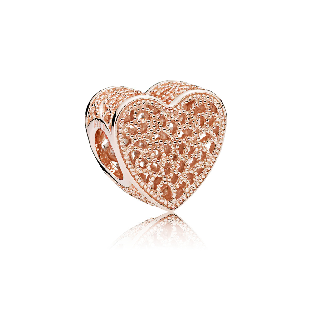 Symbolem miłości jest serce. Charms Ażurowa miłość bedzie romantycznym akcentem Twojej stylizacji. Wykonany jest z unikalnego stopu metali platerowanego 14-karatowym różowym złotem. Ręcznie wykończone, misterne, ażurowe wzornictwo z detalami w postaci filigranowych elementów i koralików przywołuje na myśl styl vintage. Charms Pandora Rose możesz nosić na bransoletce Pandora Moments jako część kompozycji charmsów przepełnionych symboliką.