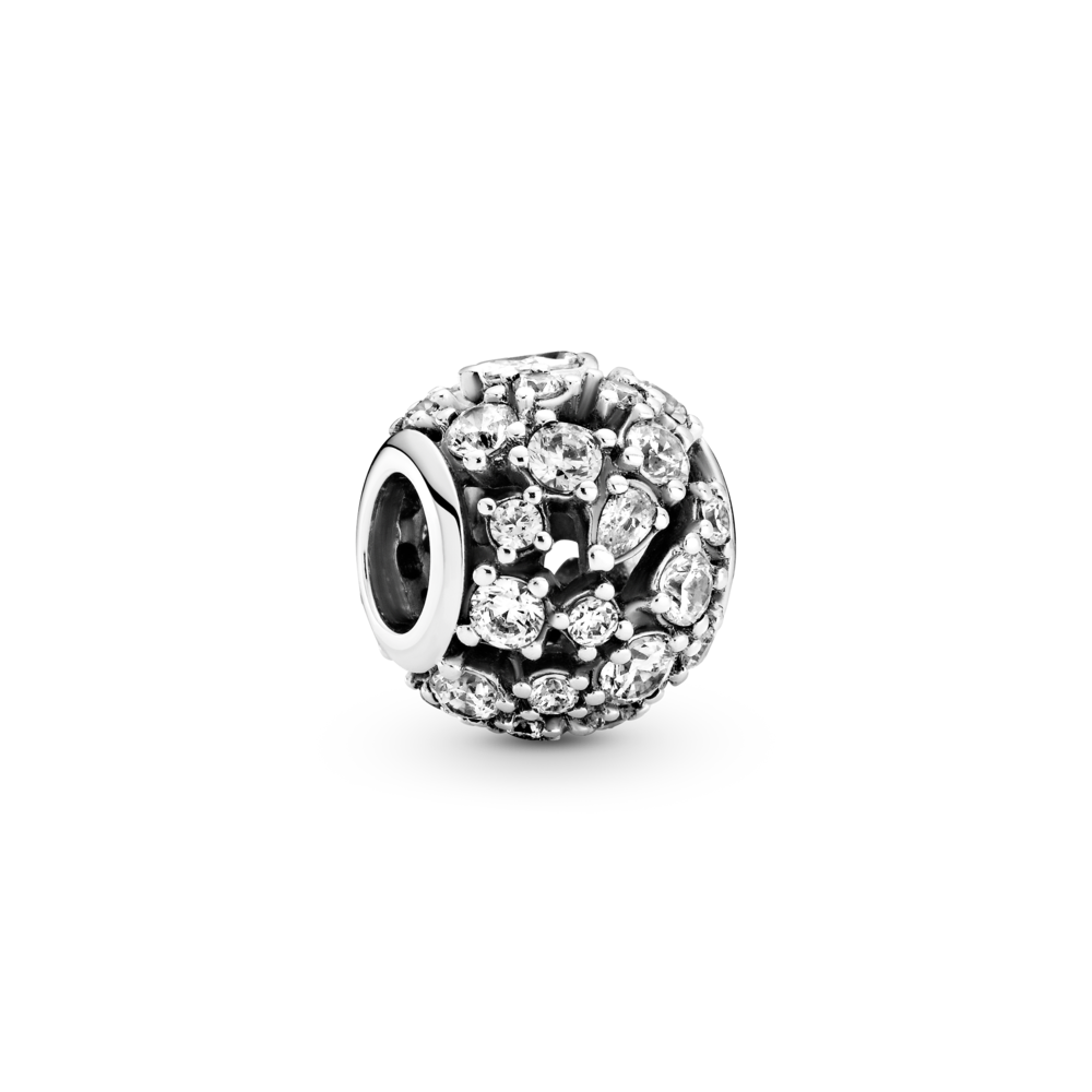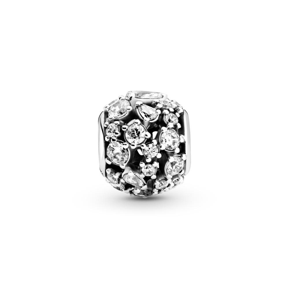 Ten charms wniesie do Twojej kolekcji odrobinę blasku. Przezroczyste cyrkonie sześcienne – okrągłe i w kształcie gruszek – układają się na ażurowej powierzchni w piękny mozaikowy wzór. Noś go na srebrnej bransoletce Pandora Moments razem z innymi klasycznymi ozdobami Pandora Timeless i skompletuj klasyczny look, który robi wrażenie. Prezentuje się też ciekawie na tle charmsów z kontrastujących metali.