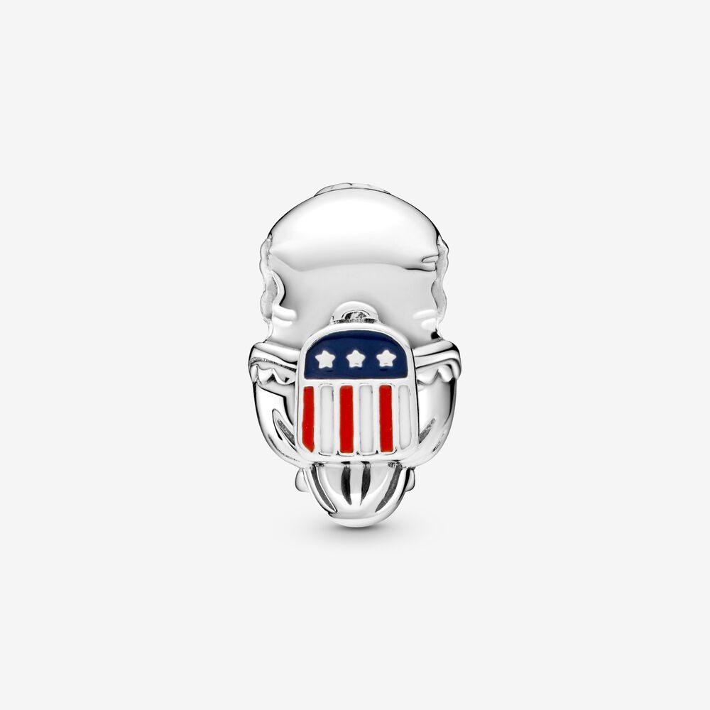Rozwiń skrzydła i wznieś się na wyżyny stylu z charmsem w kształcie bielika amerykańskiego. Wykończony ręcznie srebrny charms z bielikiem, symbolem Stanów Zjednoczonych, będzie wymownym dodatkiem w każdym zestawie charmsów. Wesoły orzeł nosi plecak w gwiazdki i paski pomalowane emalią w kolorach flagi USA – niebieskim, czerwonym oraz białym – i będzie Ci przypominać o wyjątkowej podróży lub miejscu bliskim Twojemu sercu.