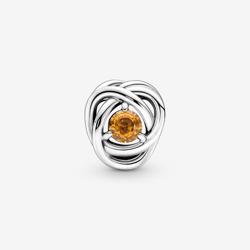 Dodaj nieco koloru swojej bransoletce dzięki charmsowi z miodowym symbolem wieczności. Ta wyjątkowa ozdoba ma kształt symbolu nieskończoności, a jej środek zdobi kryształ w kolorze miodu. Urozmaić swój styl tym lśniącym charmsem symbolizującym wieczność.
