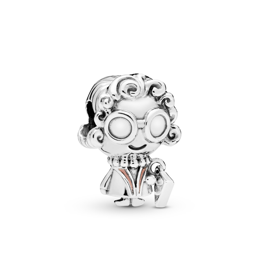 Złóż hołd swojej ukochanej babci i podaruj jej tego pięknego charmsa. Zabawne detale stanowią ogromne okulary, korale, nakręcone włosy i wisząca torebka. Klapy jej marynarki podkreślono różowym kolorem. Stwórz historię rodzinnego stylu i zestaw go z innymi postaciami na bransoletce lub bransoletce bangle.