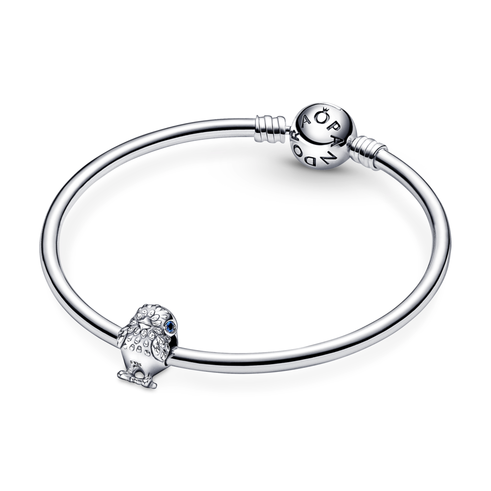 Wstawaj z kurami i naszym lśniącym charmsem w kształcie uroczego kurczaczka. Słodki kurczak zainspirowany przebudzeniem wiosny oraz idyllicznymi widokami i dźwiękami wsi został wykończony ręcznie ze srebra. Ma oczka z błękitnych kryształów syntetycznych o szlifie brylantowym okrągłym, w oprawie bead, a także teksturowane piórka. Połącz go z innymi zwierzakami oraz wiosennymi charmsami w lekko żartobliwą, tematyczną kompozycję.