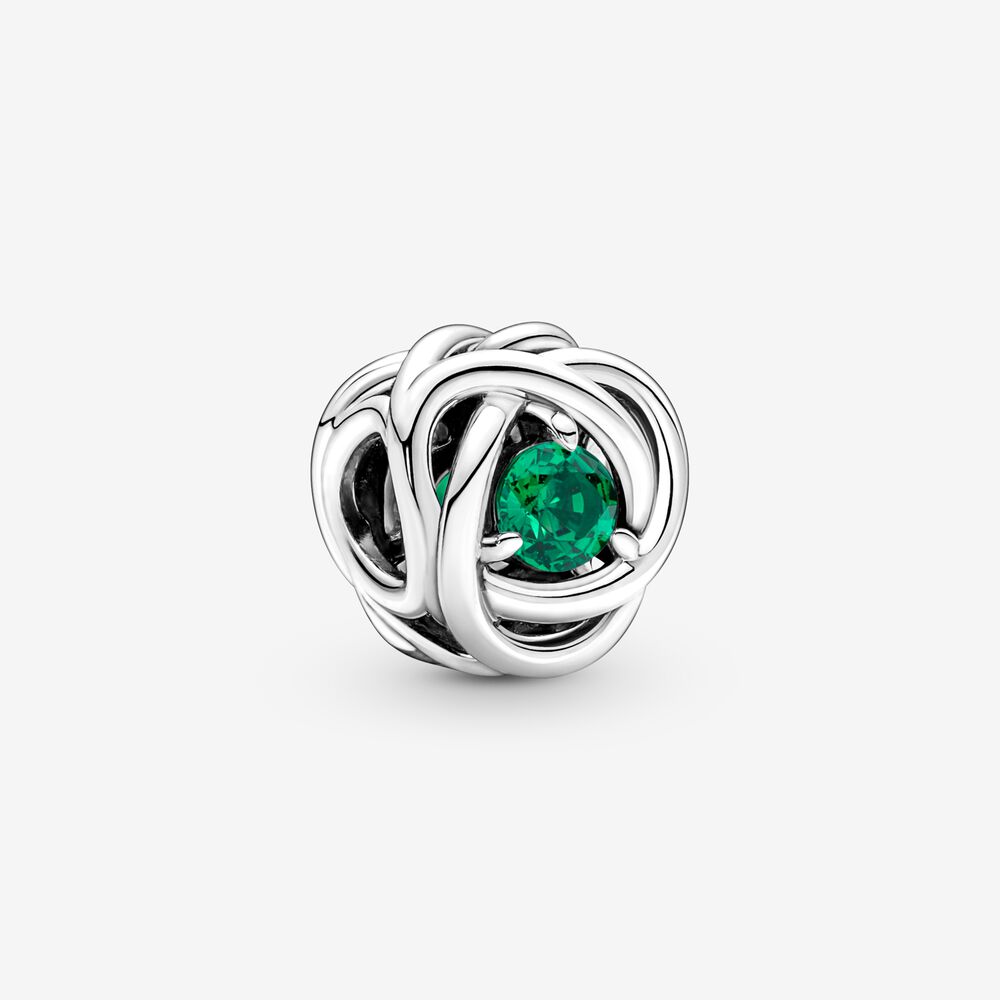 Dodaj nieco koloru swojej bransoletce dzięki charmsowi z zielonym symbolem wieczności. Ta wyjątkowa ozdoba ma kształt symbolu nieskończoności, a jej środek zdobi kryształ w kolorze intensywnej zieleni. Urozmaić swój styl tym lśniącym charmsem symbolizującym wieczność.