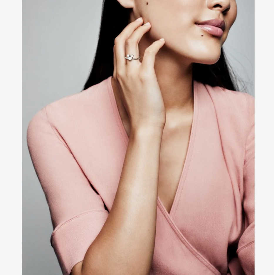 Układaj własne zestawy i dodaj do swojej kolekcji jeden z naszych pierścionków, który w połączeniu z innymi elementami stworzy zupełnie nową ozdobę. Ten srebrny pierścionek ma kształt sylwetki Myszki Miki. Jest polerowany na wysoki połysk, a dzięki swojemu kształtowi doskonale nadaje się do łączenia w zestawy – noś go solo lub załóż z pasującym pierścionkiem z Myszką Minnie, aby stworzyć zupełnie nowy look. Zacznij bawić się stylem!