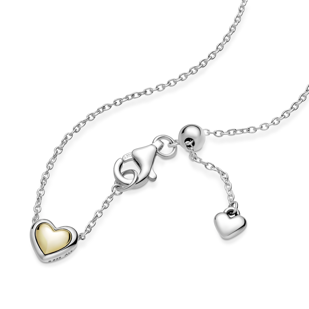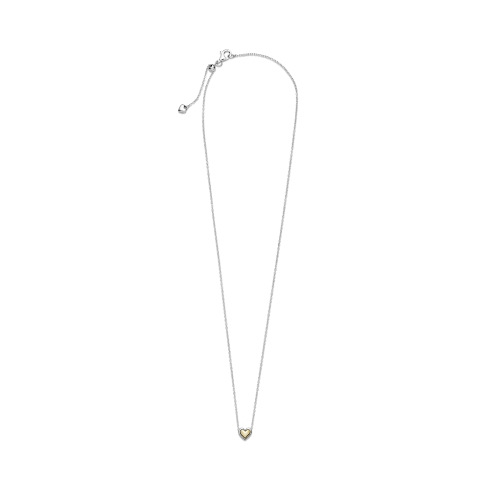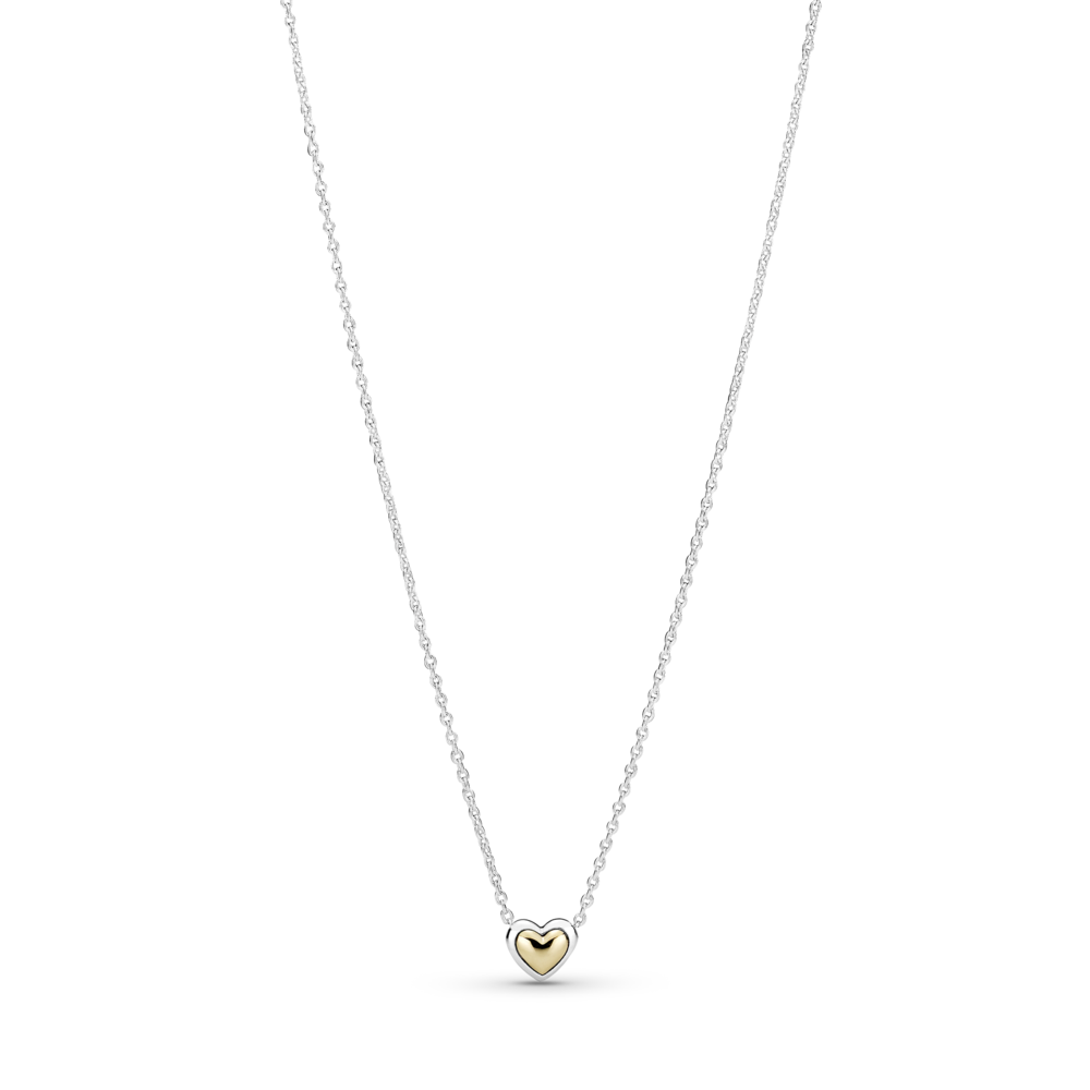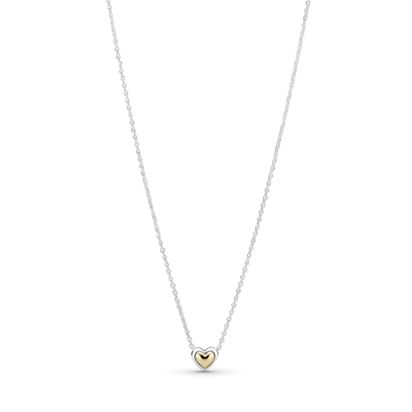 Dwutonowy Wypukły złoty naszyjnik w kształcie serca PANDORA