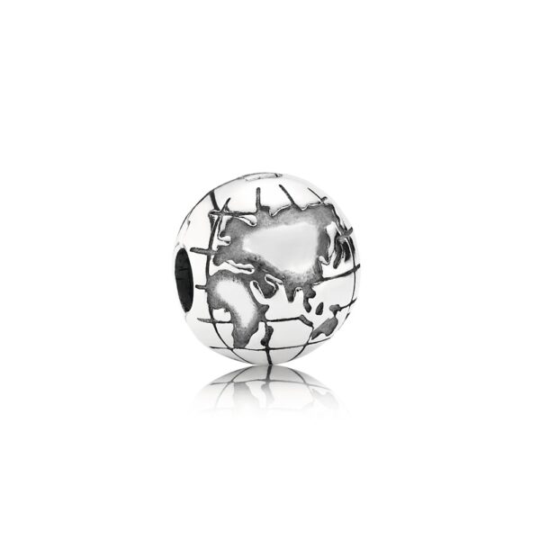 Klips Globus jest idealnym dodatkiem jeśli kochasz podróże. Klips został ręcznie wykonany ze srebra i ozdobiony mapą świata ze szczegółowymi detalami w postaci południków i równoleżników. Stwórz stylizację inspirowaną wyprawami i noś go jako symbol swojej podróżniczej natury razem z innymi ulubionymi charmsami Pandora Moments. Klips nie ma silikonowego insertu, będzie się więc przesuwać, jeśli nie zapniesz go na łącznikach (dwóch wypukłych elementach).