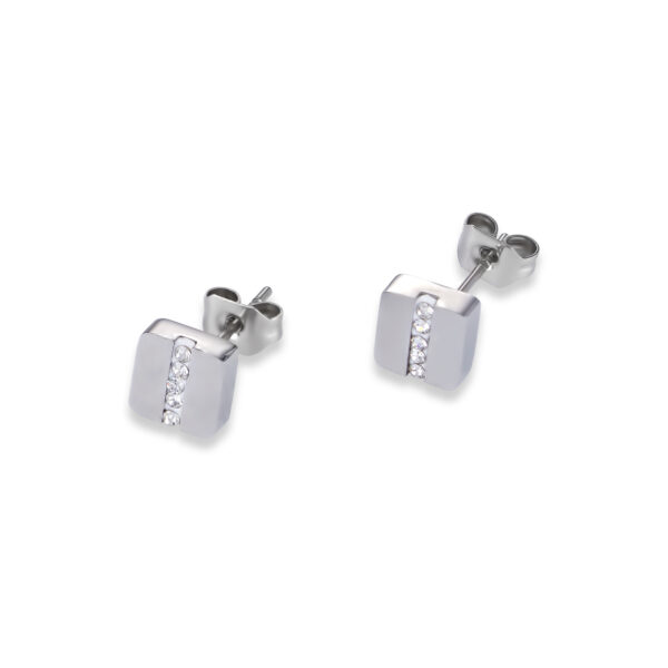 Eleganckie, drobne kolczyki ze stali szlachetnej, zdobione błyszczącymi kryształami w oprawie pavè.