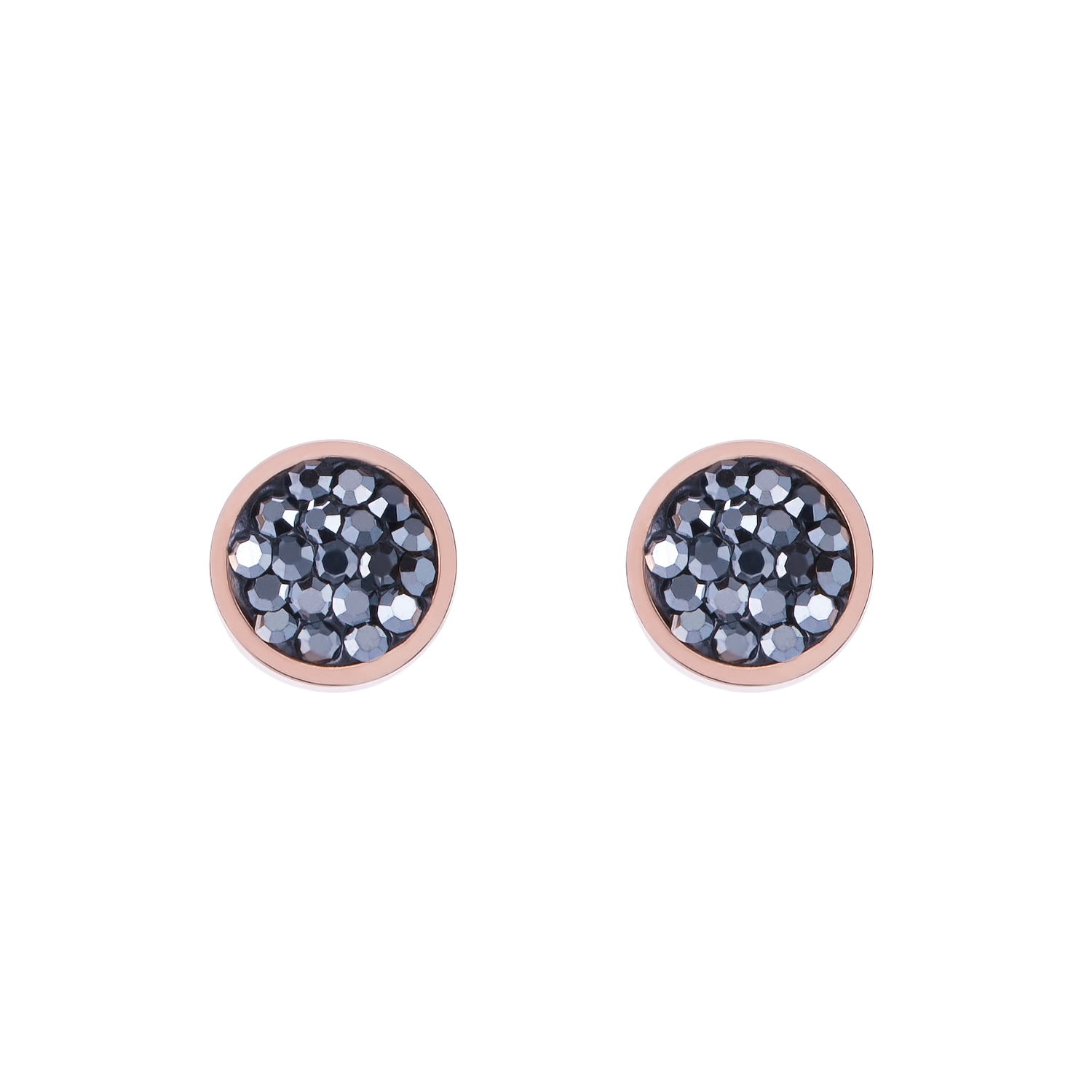Eleganckie, drobne kolczyki ze stali szlachetnej pokrywanej różowym złotem, zdobione błyszczącymi kryształami w oprawie pavè.