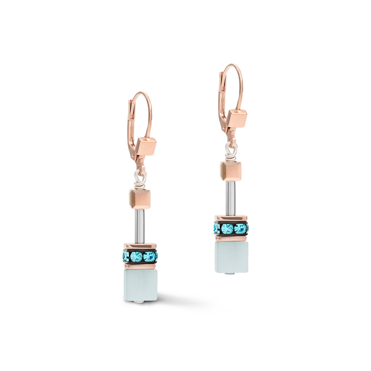 Ręcznie wykończone, zdobione kryształami Swarovski® Crystals oraz stalą szlachetną pokrywaną różowym złotem. Pełne wdzięku filigranowe połączenia z delikatnymi szklanymi elementami. Zapięcia wykonane ze srebra pokrywanego różowym złotem.