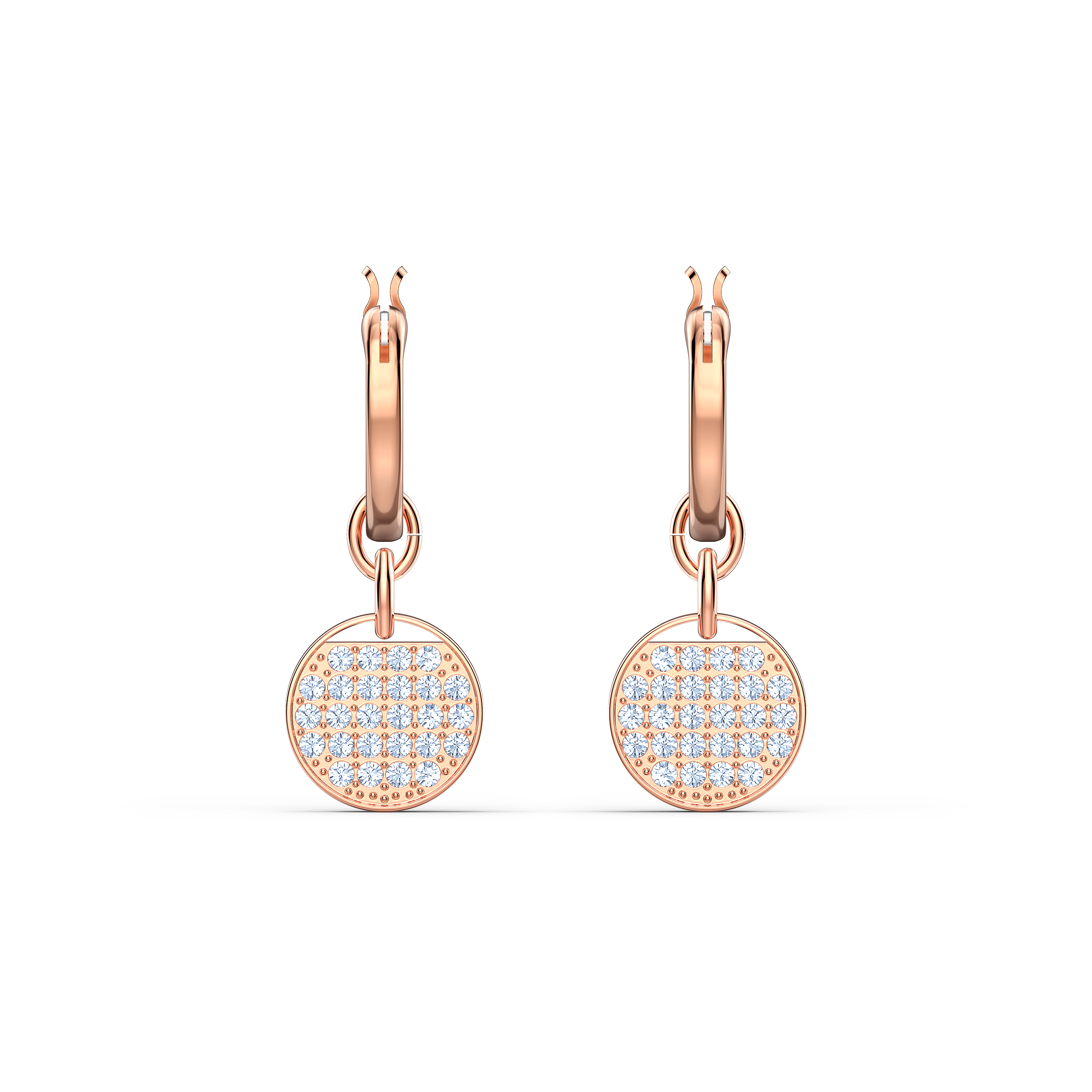 Jedna para kolczyków Swarovskiego dla wielu różnych stylizacji. Ten inspirujący projekt oferuje wiele sposobów noszenia. Kolczyki składają się z dwóch części: obręczy pokrytej kryształowym pavé i monety ozdobionej przezroczystym kryształowym pavé po jednej stronie i pojedynczym błyszczącym kryształem po wypolerowanej drugiej stronie. Zwisające elementy można odwrócić, aby uzyskać inny wygląd, lub usunąć, aby pasowały do bardziej subtelnych stylów. Świetny i wszechstronny wybór do ozdabiania codziennych stylizacji.