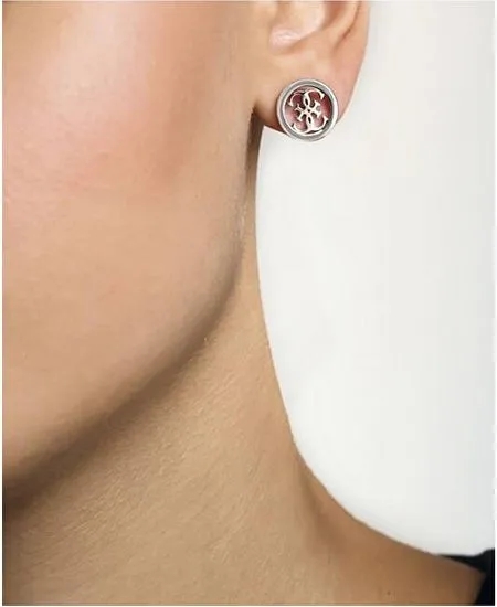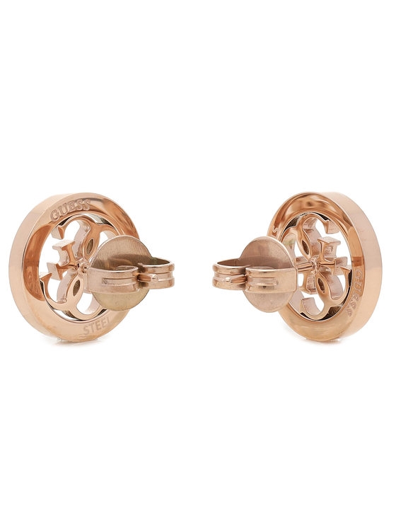 Kolczyki w postaci połączonych liter G, na których wygrawerowano logo Guess. Różowe złocenie nadaje im luksusowy wygląd. Zapinane na dobrze podtrzymujący, estetyczny i niezauważalny sztyft. Wyprodukowane zostały z wysokiej jakości stali szlachetnej platerowanej różowym złotem dla ekskluzywnego designu i wyższej odporności na uszkodzenia.