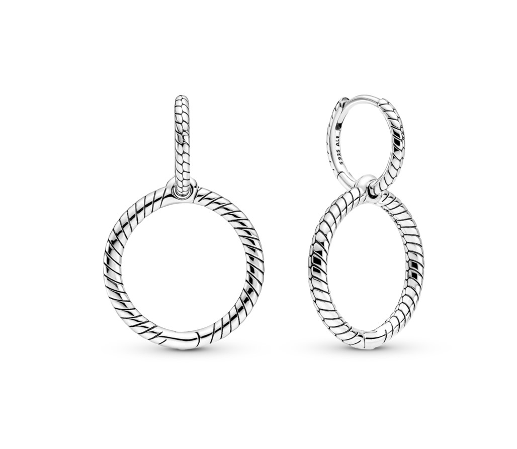 | Zwiększ dwukrotnie wrażenie, jakie robisz, wybierając kolczyki-podwójne obręcze Pandora Moments Charm. Te kolczyki z podwójnymi obręczami ze srebra próby 925 wykonane są z kultowego łańcuszka Pandora o splocie wężowym. Na dolnej obręczy mogą się zmieścić trzy charmsy, wisiorki lub zawieszki (trzeba tylko uważać, aby ich nie przeładować, tak aby nie obciążały uszu). Są zaprojektowane tak, aby charmsy były skierowane do przodu, zatem dobierz swoje ulubione elementy i podkreśl swoją twarz obramowaniem tych przyciągających uwagę podwójnych obręczy. |