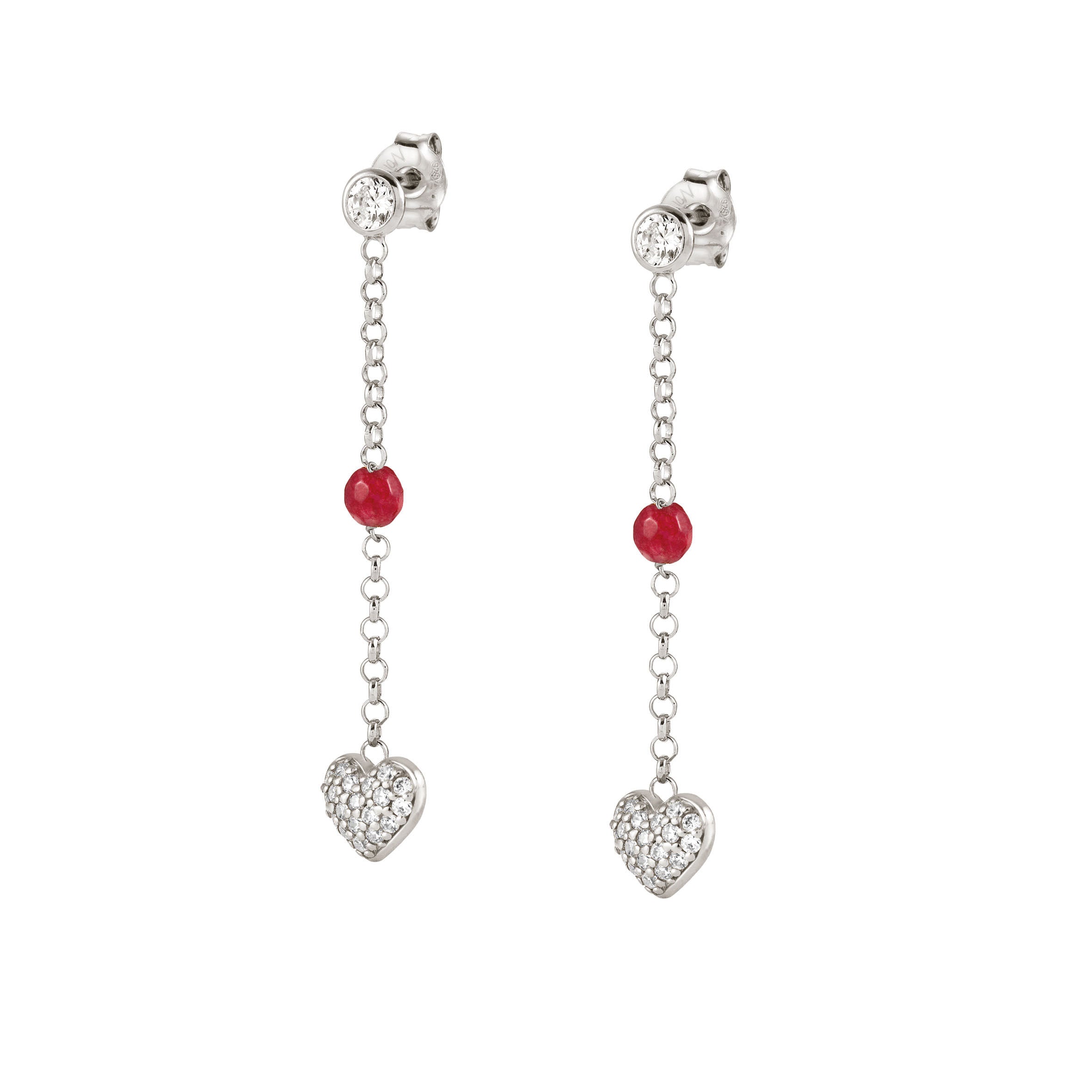Oryginalne wiszące kolczyki renomowanej firmy Nomination, wykonany ze srebra próby 925 zdobione czerwonym jadeitem i sercem z cyrkoniami.