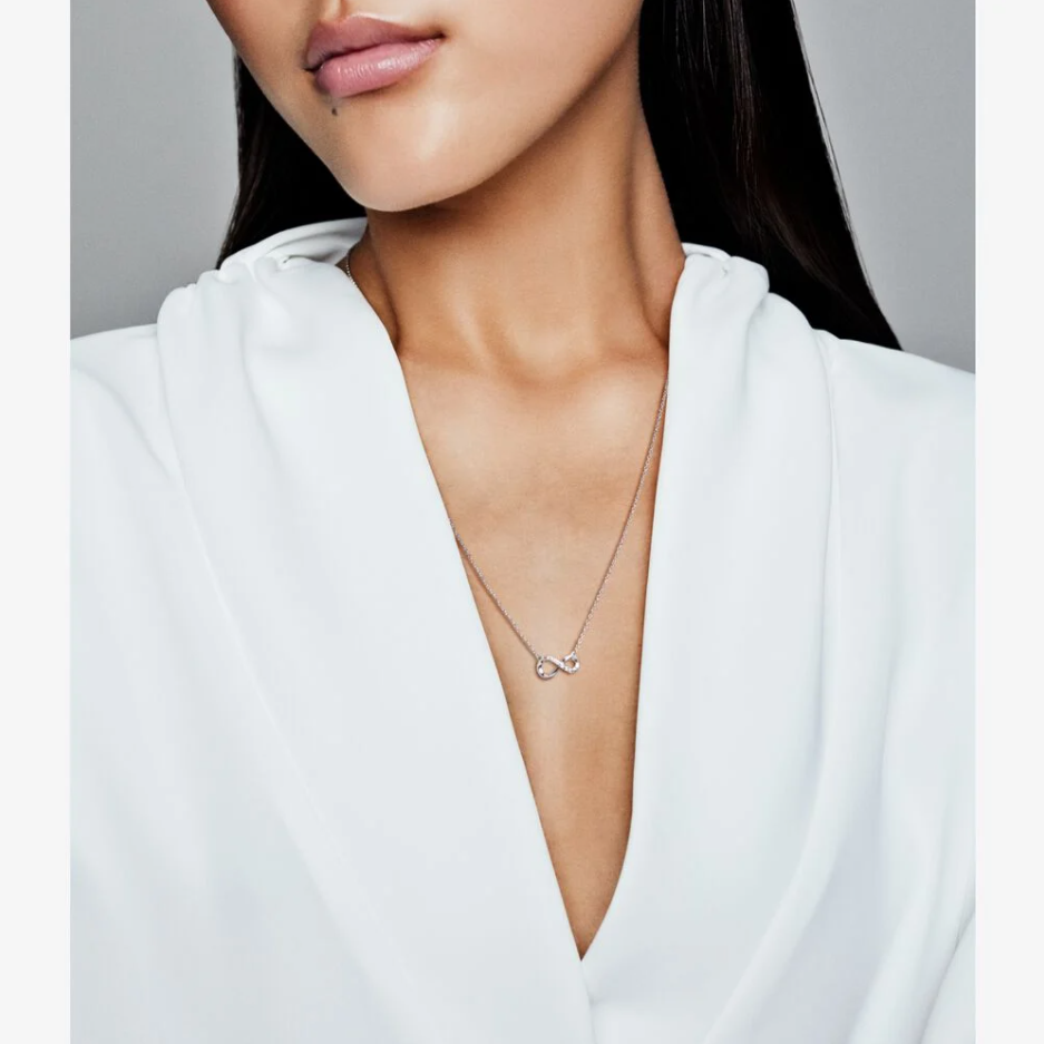 Subtelna kolia z symbolem nieskończoności przywodzi na myśl miłość, która trwa na wieki. Piękny wzór lśni chłodnym blaskiem srebra i skrzy się przezroczystymi cyrkoniami sześciennymi. Symbol nieskończoności został zainspirowany nierozerwalną więzią między matką a dzieckiem – to uniwersalny, powszechnie rozpoznawalny znak bliskości, który wyrazi Twoje najgłębsze emocje. Noś tę kolię z inną biżuterią ozdobioną symbolami nieskończoności lub podaruj bliskiej kobiecie, którą zawsze będziesz kochać.