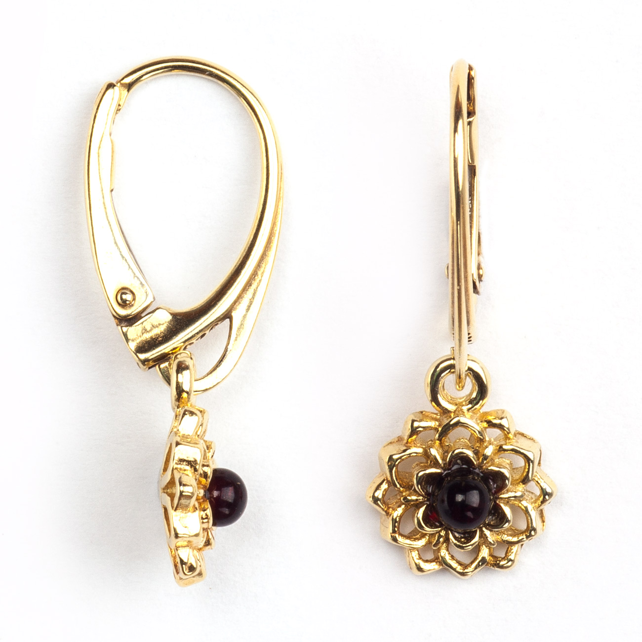 KWIATKI kolczyki z wiśniowym bursztynem