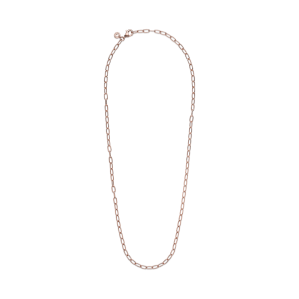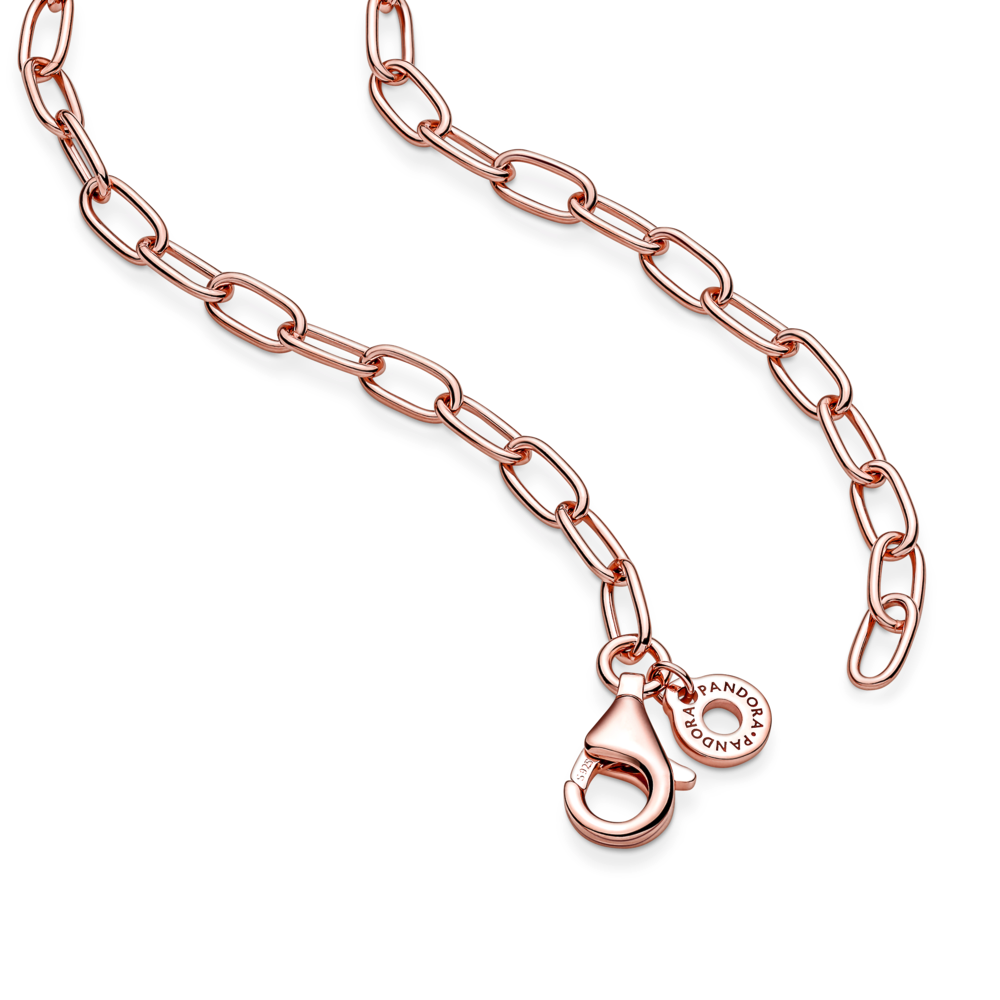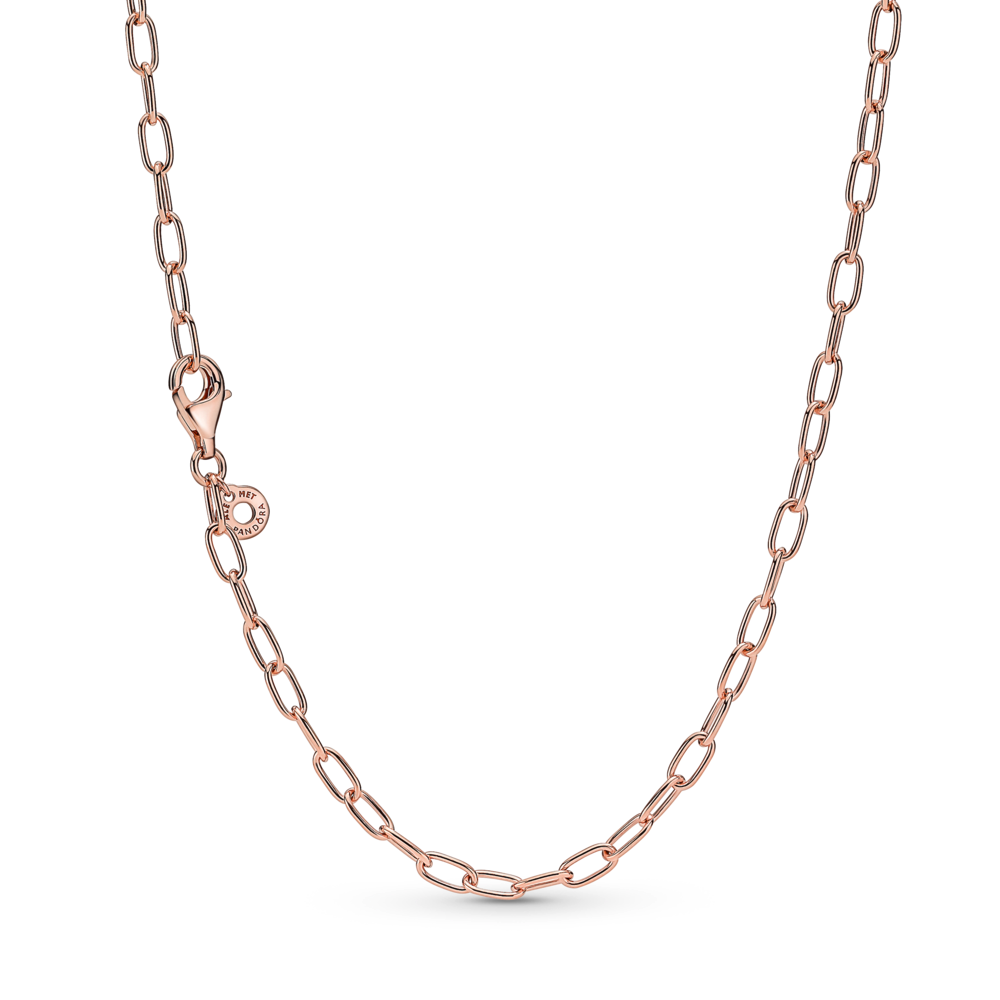 Klasyczna ozdoba, której nie powinno zabraknąć w żadnej kolekcji biżuterii. Łańcuszek platerowany 14-karatowym różowym złotem jest dostępny w jednym rozmiarze. Stworzy współczesną, tonalną kompozycję z prostymi kolczykami platerowanymi 14-karatowym różowym złotem. Możesz też ozdabiać go małymi, średnimi lub dużymi zawieszkami Pandora O, aby nosić ulubione charmsy w zupełnie inny sposób. Niezwykle modne są też zestawy kilku naszyjników różniących się fakturą powierzchni i długością.