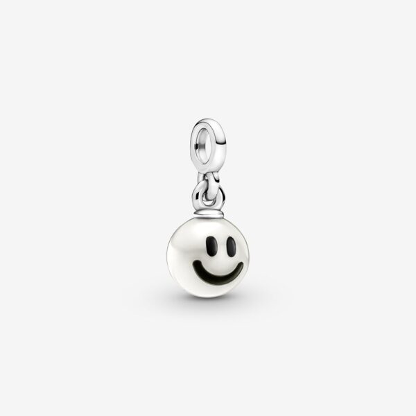 Przenieś swoje ulubione emoji z klawiatury na biżuterię z małą zawieszką Pandora ME Uśmiechnięta buźka. Kultowa uśmiechnięta buźka została wykonana ze słodkowodnej perły hodowlanej i ozdobiona emalią, aby stworzyć lśniący symbol szczęścia. Zapięcie małej zawieszki pasuje do otwieranych ozdobnych łączników Pandora ME, które możesz nosić na bransoletkach, naszyjnikach, pierścionkach i kolczykach obręczach.
