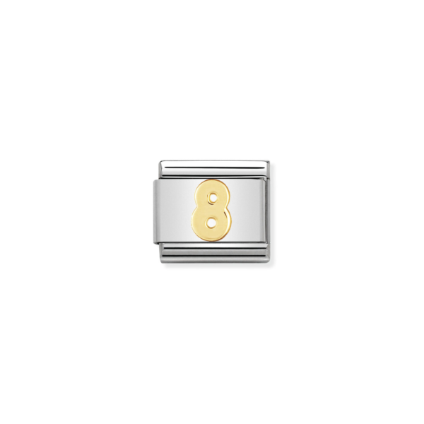 Oryginalny element do bransoletki komponowanej Nomination Composable Classic ze stali szlachetnej z numer “8” z 18-karatowego złota. Dostępne wersje linków: 0-9.