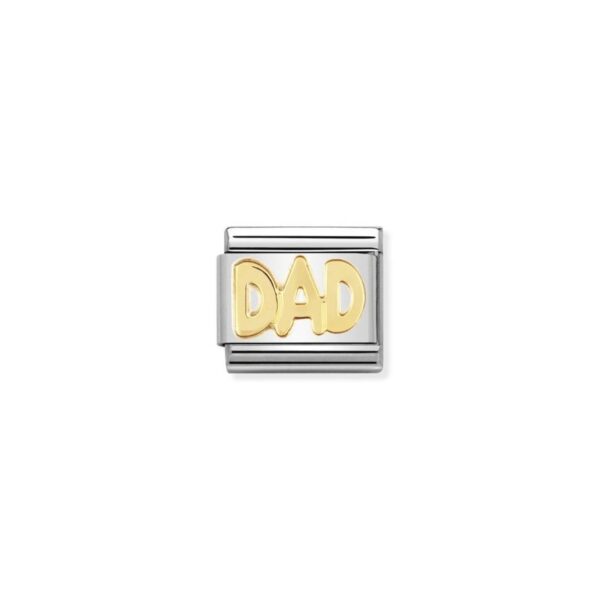 Oryginalny element do bransoletki komponowanej Nomination Composable Classic ze stali szlachetnej z napisem DAD z 18-karatowego złota.