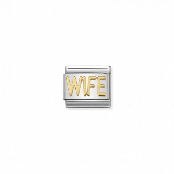 Oryginalny element do bransoletki komponowanej Nomination Composable Classic ze stali szlachetnej z napisem WIFE z 18-karatowego złota.