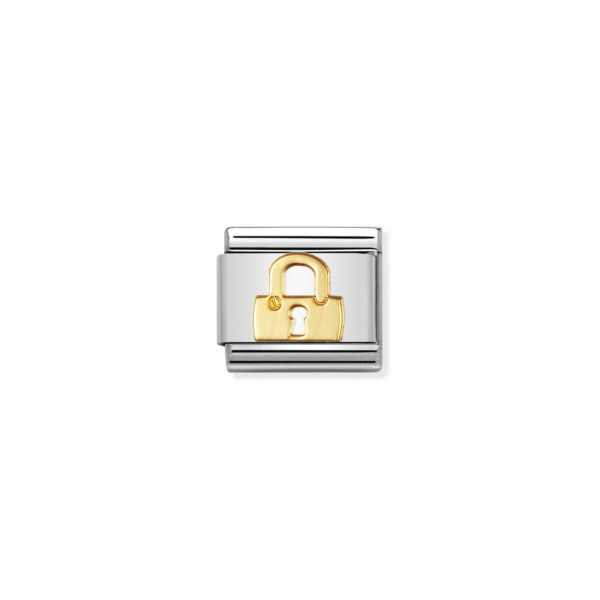 Oryginalny element do bransoletki komponowanej Nomination Composable Classic ze stali szlachetnej z symbolem kłódki z 18-karatowego złota.